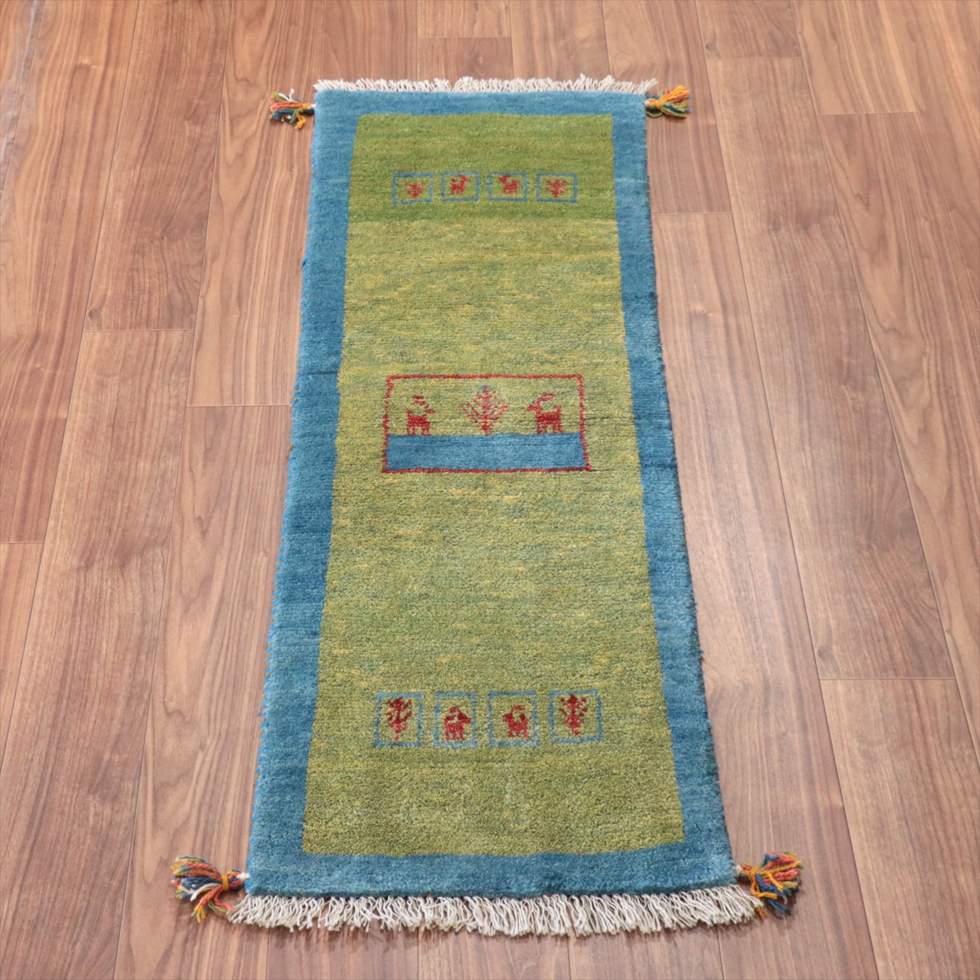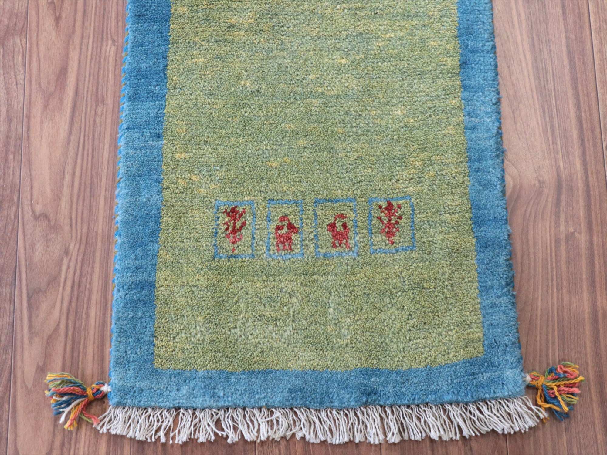 ギャッベ プリミティブで素朴なデザイン/ 143x49cm グリーン ランナー