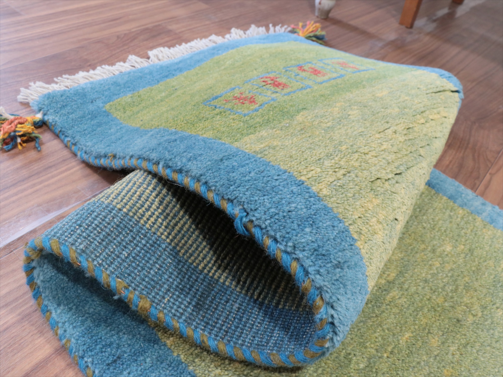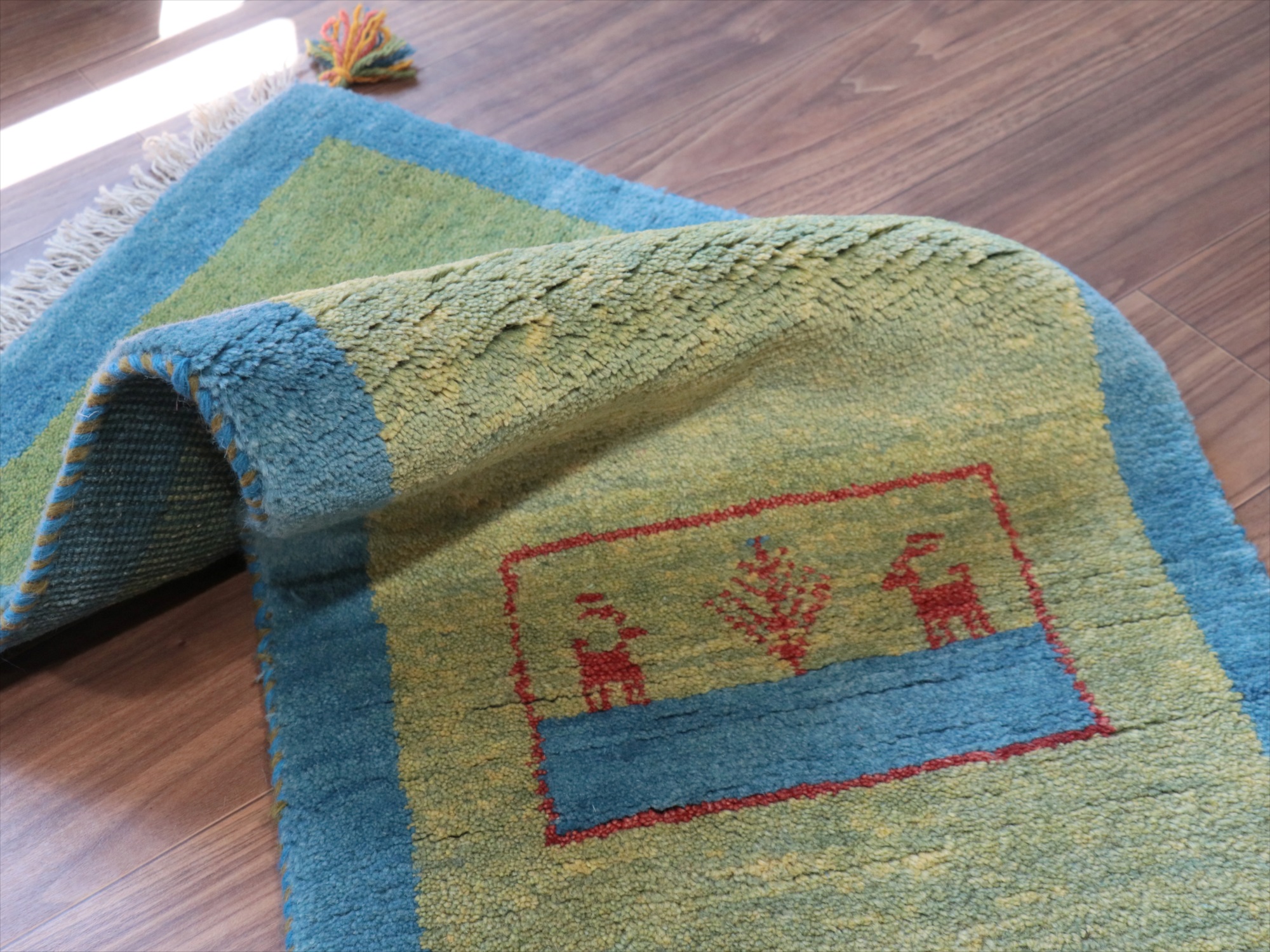 | このギャッベは、織られた年代は定かではありませんが、2000年代に織られたもので、販売されずに残っていたデッドストックです。色使いやモチーフの大きさ、デザインのバラツキなど、現代の洗練されたギャッベとは一味違う昔ながらの素朴な雰囲気が漂います。 額縁のようなボーダーのあるデザインは(特にランナーは)、2020年代にはいってからはあまり見かけなりましたので、新鮮な感じを受けます。これぞギャッベというデザインです。 |