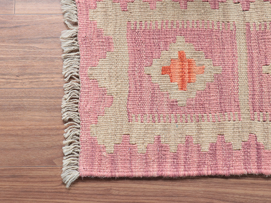 | イランとトルコの国境の山岳地帯に住むカシュカイ族の織るキリム。素朴で少しボソっとした風合いのあるキリムです。カラフルな色なので、空間を明るくする効果があります。玄関マットやテーブルセンター、タペストリーなど様々な用途にお使いいただけます。 キリムはすべて手織りで作られています。織る女性の手の加減によって、サイズの多少の誤差やゆがみ等がありますことはご了承願います。 |