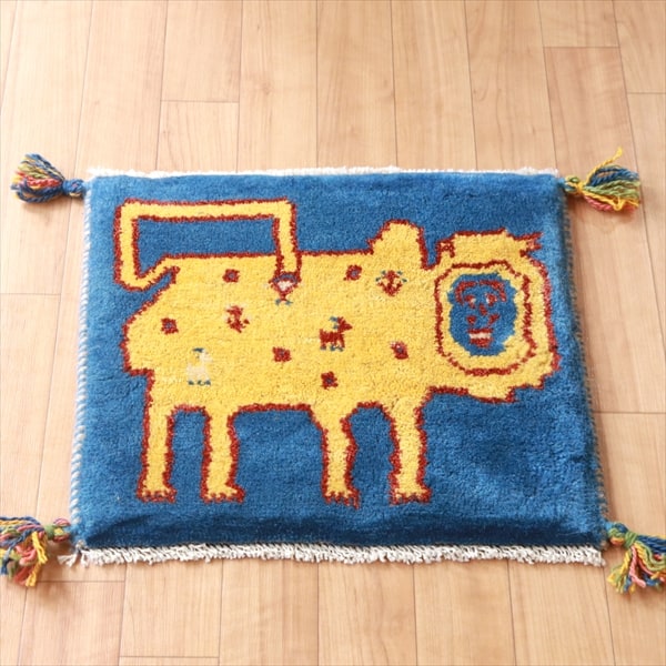 ライオンギャッベ 40x43cm ブルー やさしい表情の人面ライオン ブルー