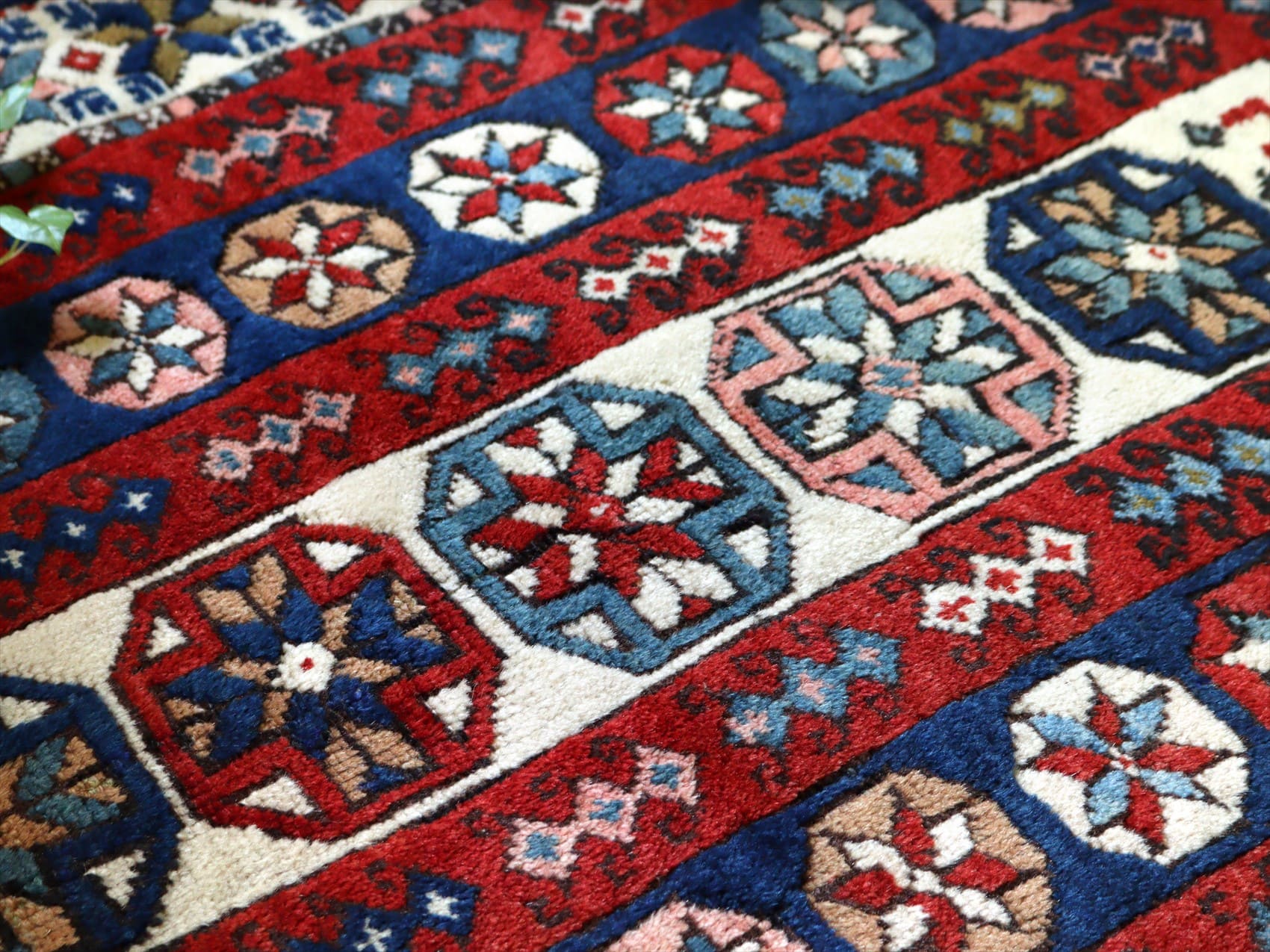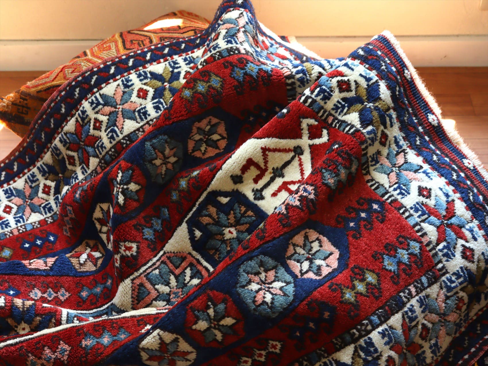 トルコの手織り絨毯 草木染147×102cm 星のモチーフ