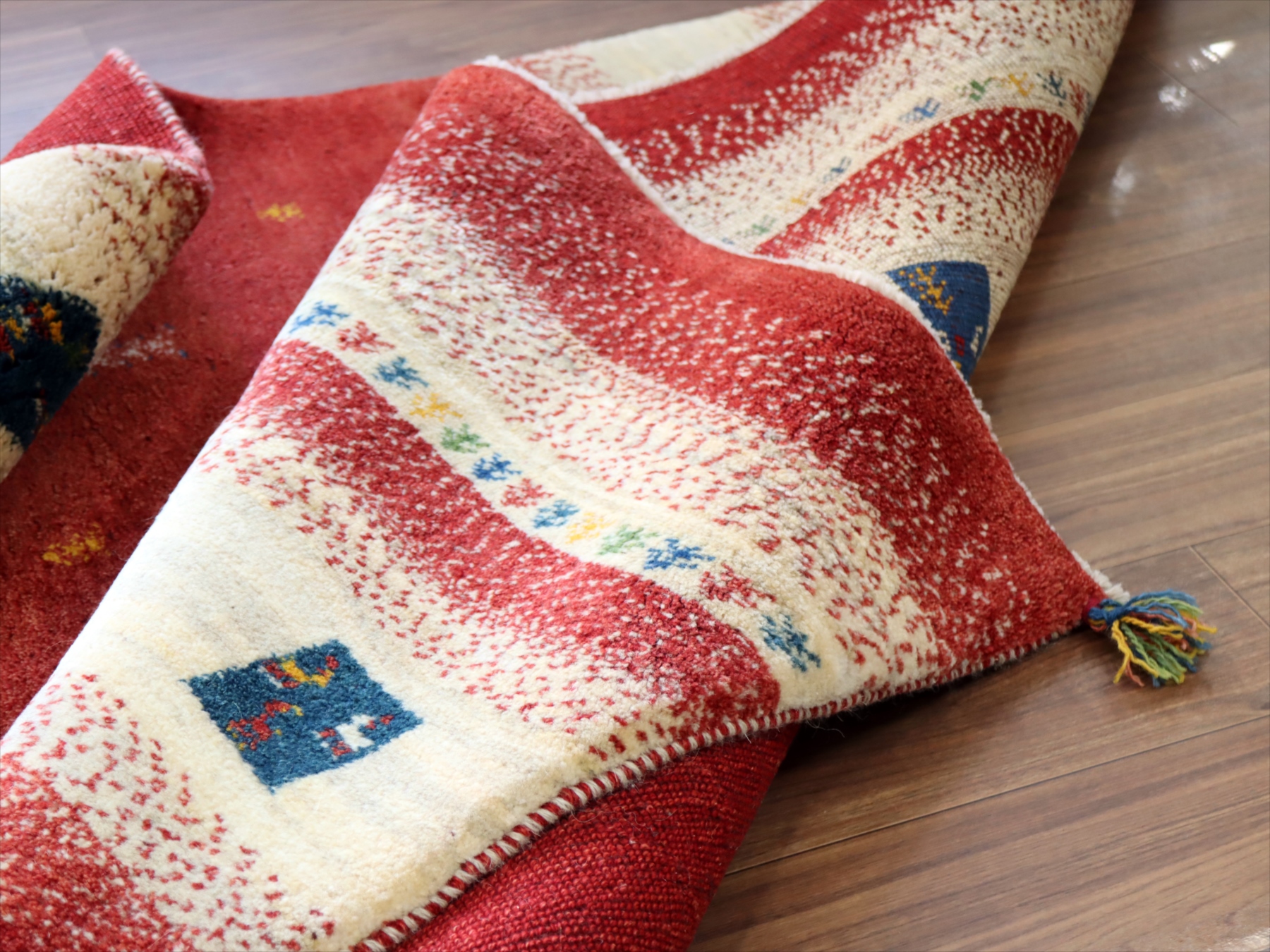 ギャッベ カシュカイ族の手織りラグ 189x154cm レッド&ナチュラルアイボリー