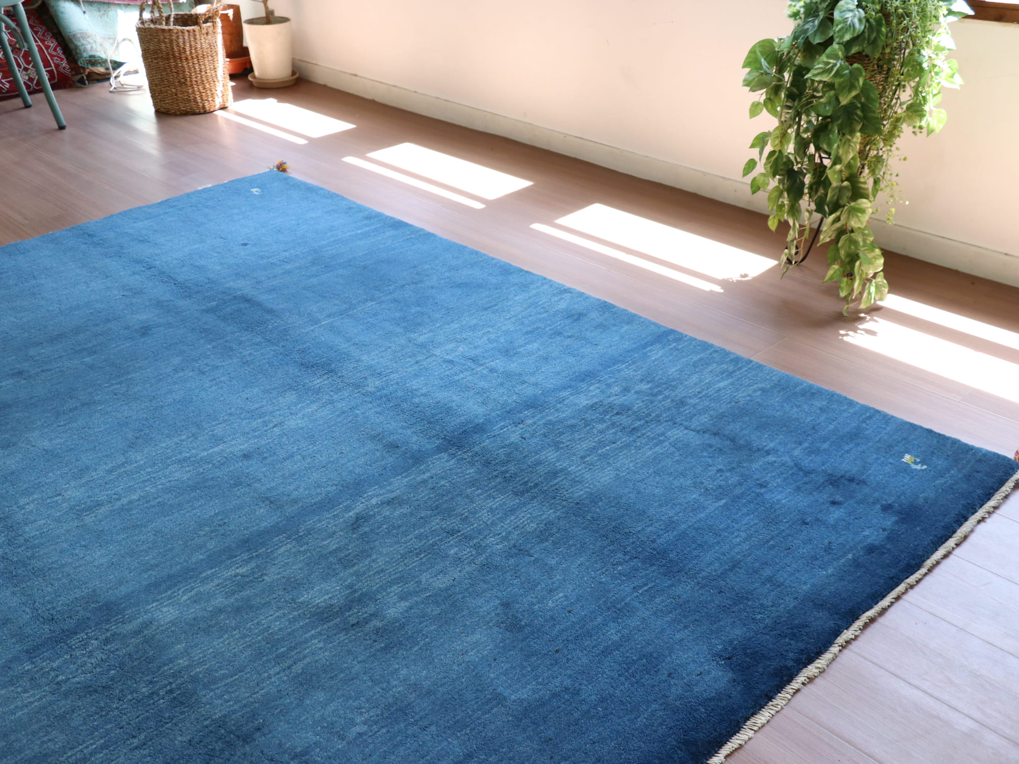 5. ギャベ ギャッベ イラン産手織り 243x203cm 無地 シンプルなブルーグラデーション
