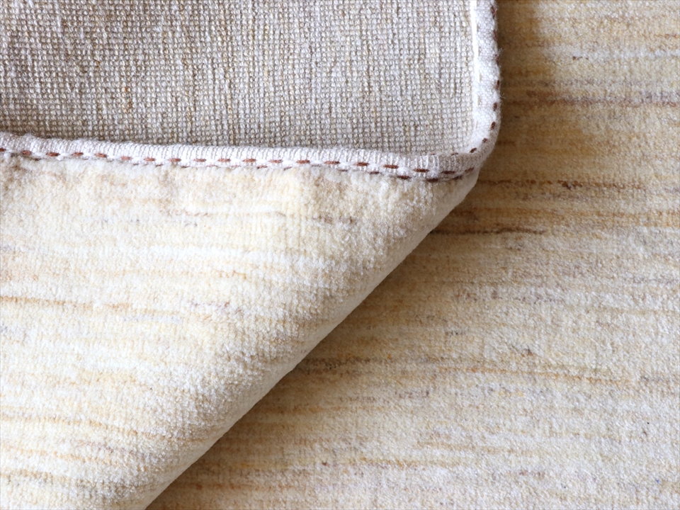 | 染めていないナチュラルカラーの毛糸を使用したギャッベ。単色ではなく色の異なる毛糸を使用しているため角度によって色の深みを楽しむことが出来ます。 |