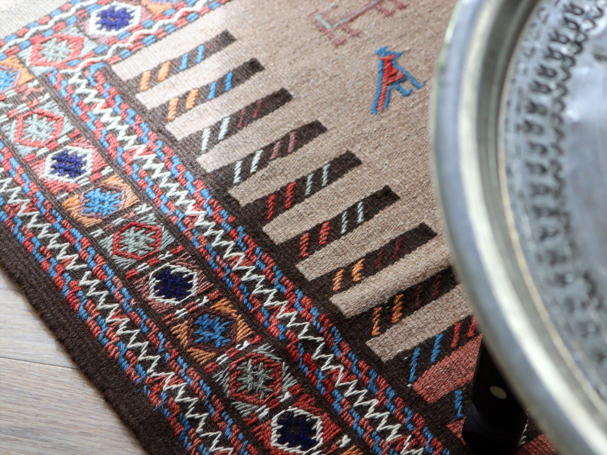 Key:イランキリム, オールドキリム, 民芸, 平織り, Iranian kilim, Area rug, Handmade, Collectable, BO-HO, Bohemian, one of kind