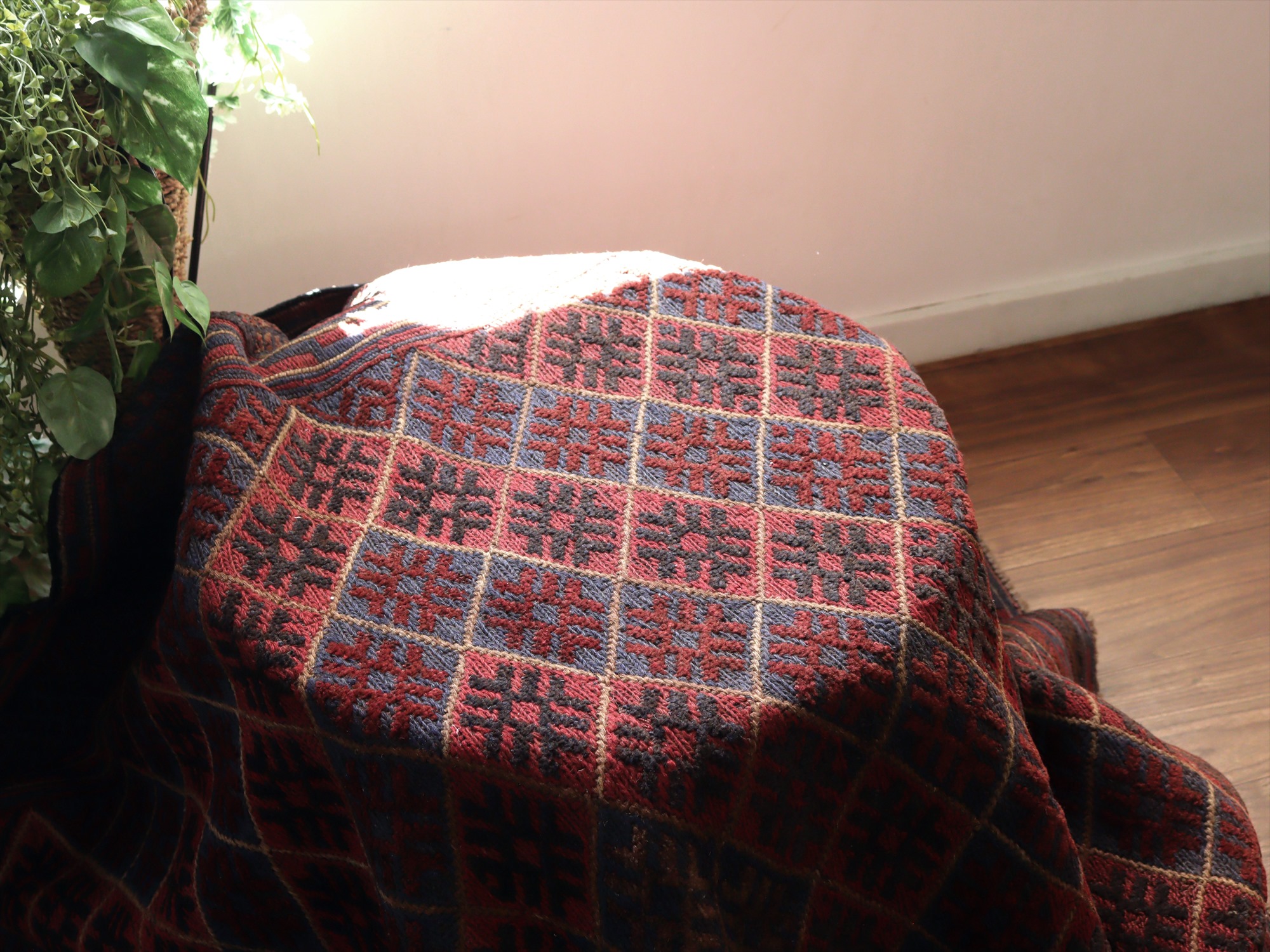 ベース地はスマック織りでしっかりとした織り地です。モチーフ部分はパイル(毛足)のある織りで、表面には立体感があります。 |