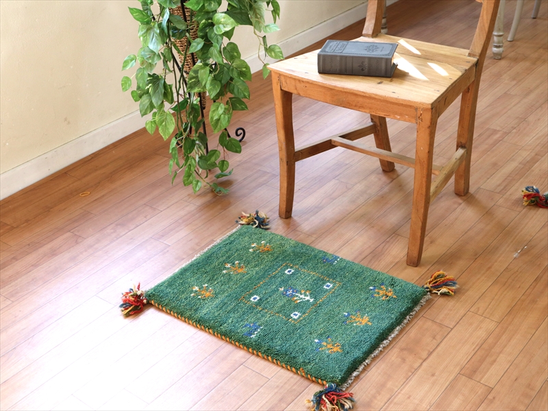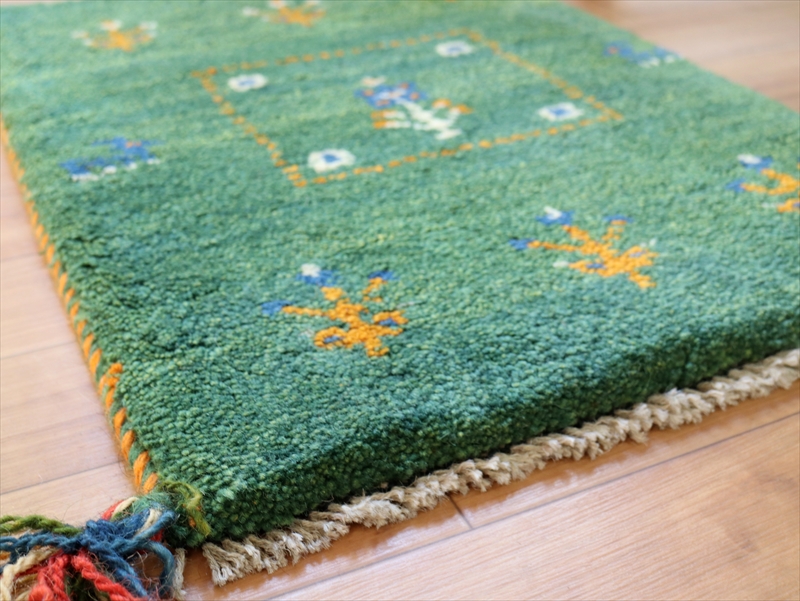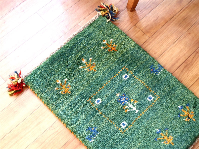 - ギャッベ イラン産 手織り 54x38cm ふかふか グリーン