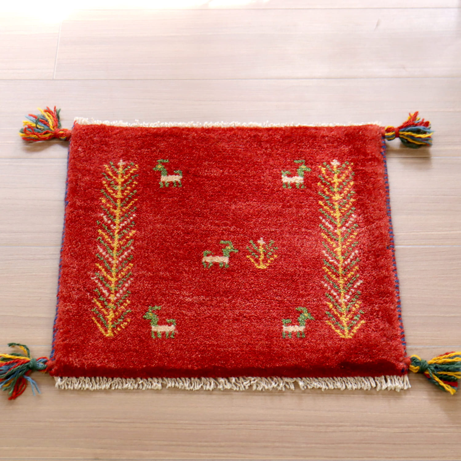 ギャッベ 座布団サイズ 40x45cm レッド イラン産手織りギャッベ
