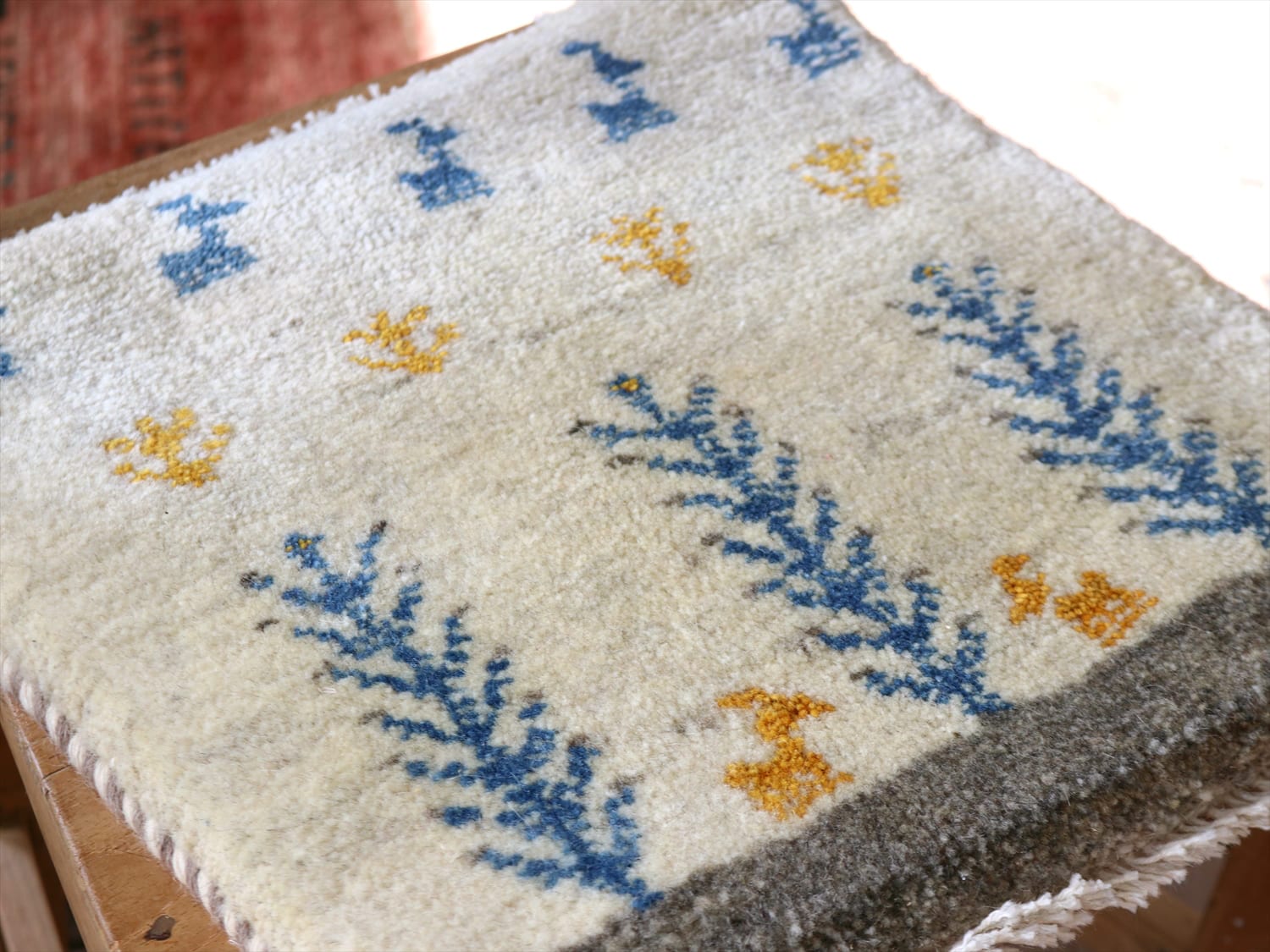 ギャッベ Gabbeh 座布団サイズギャベ 37x38cm ナチュラルアイボリー イラン製手織り