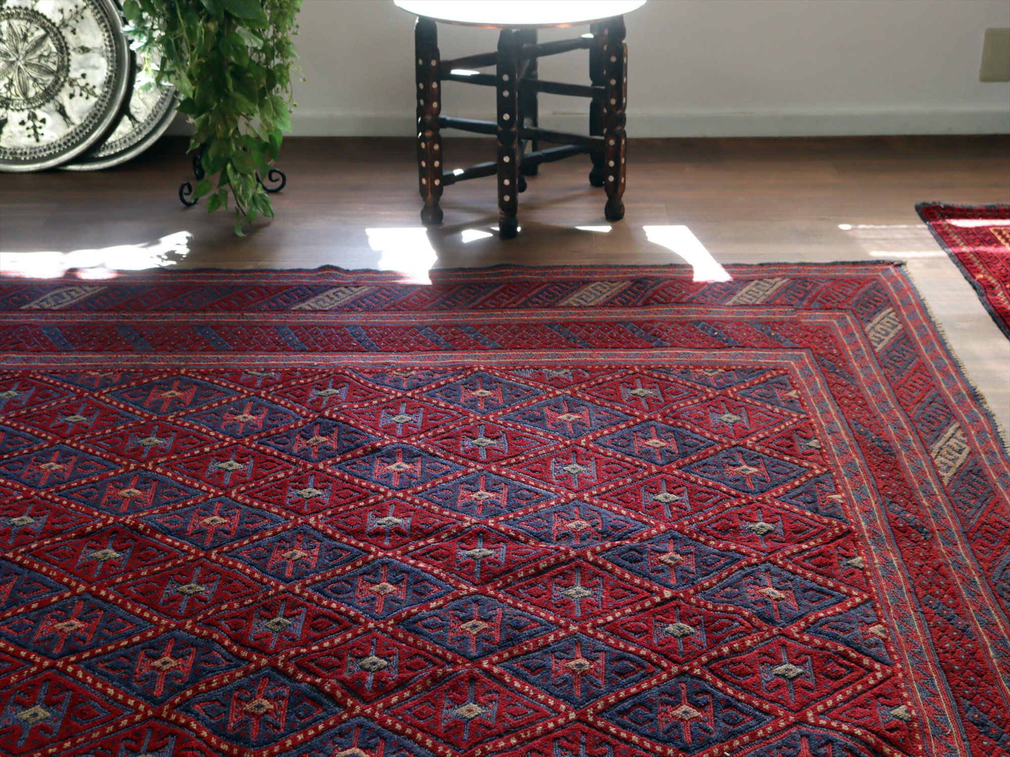 オールドキリム アフガニスタン ミシュワニ205×197cm 連なる幾何学模様