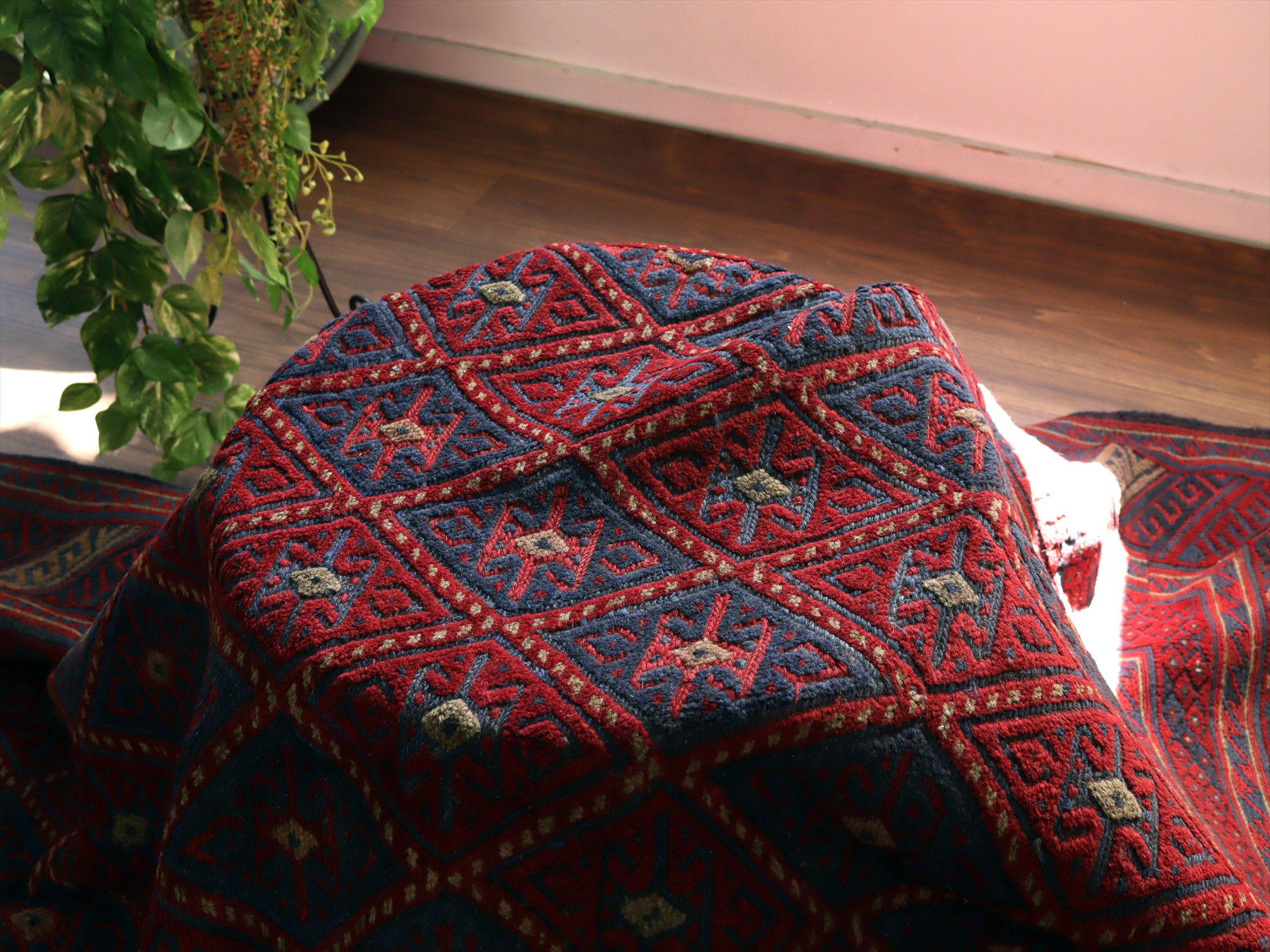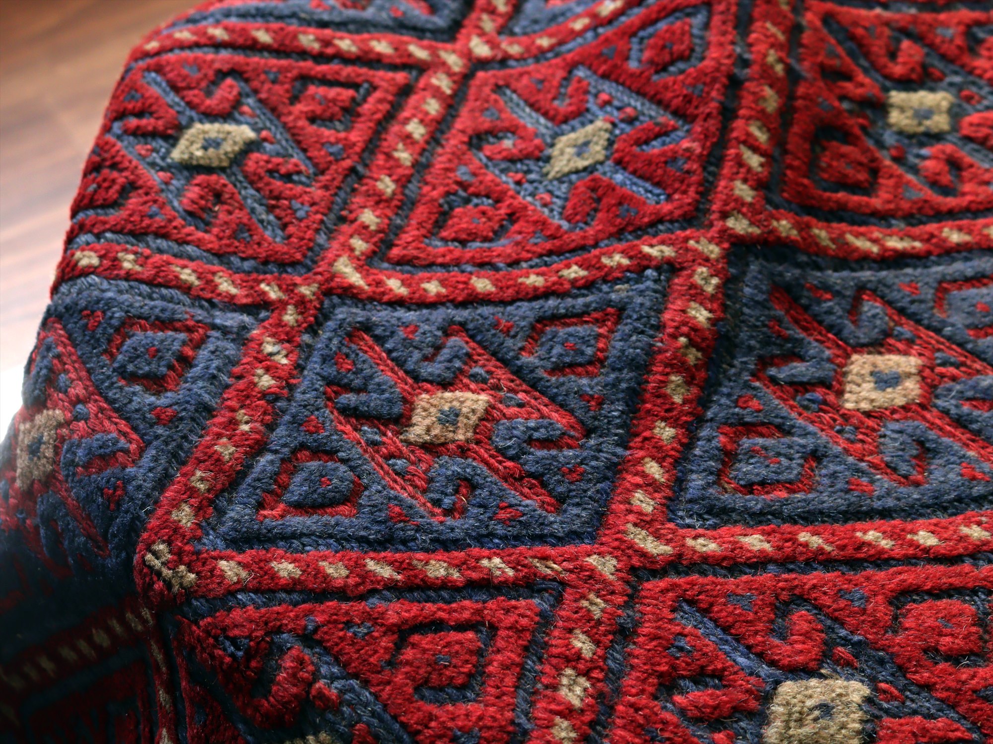 ベース地はスマック織りでしっかりとした織り地です。モチーフ部分はパイル(毛足)のある織りで、表面には立体感があります。 |