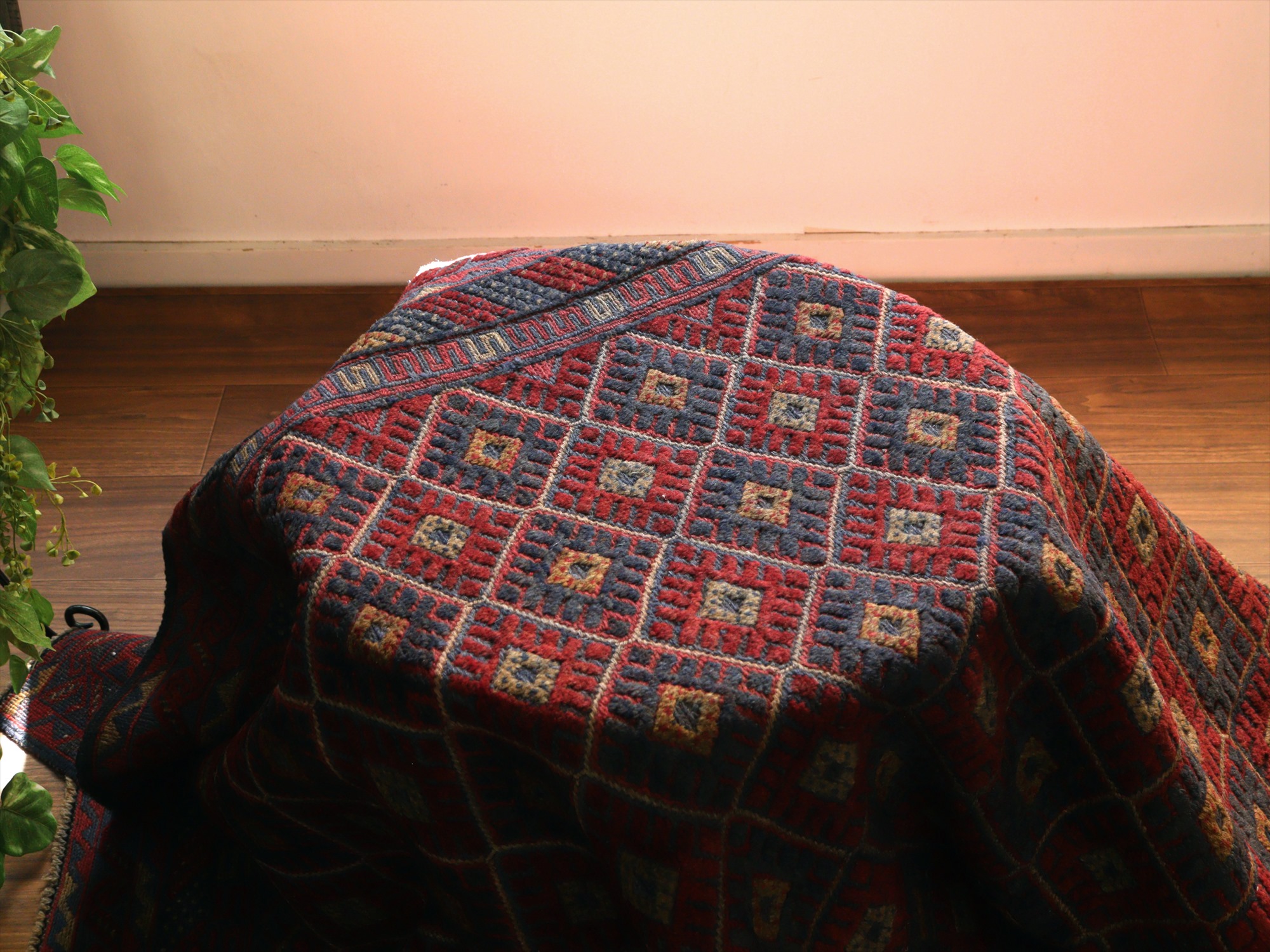 ベース地はスマック織りでしっかりとした織り地です。モチーフ部分はパイル(毛足)のある織りで、表面には立体感があります。 |