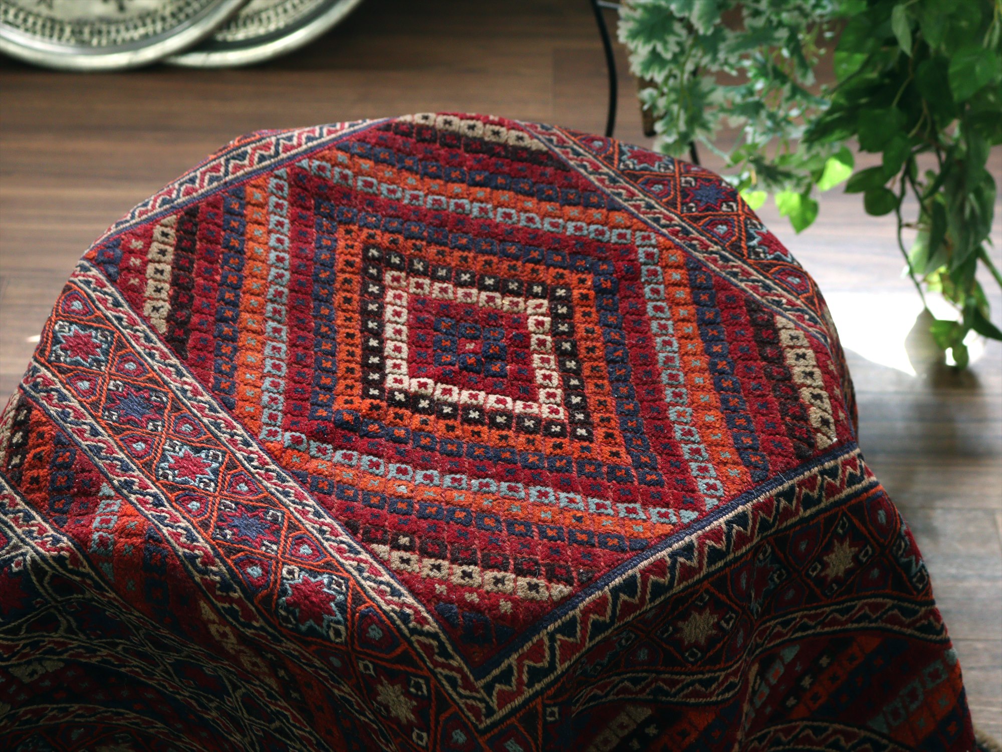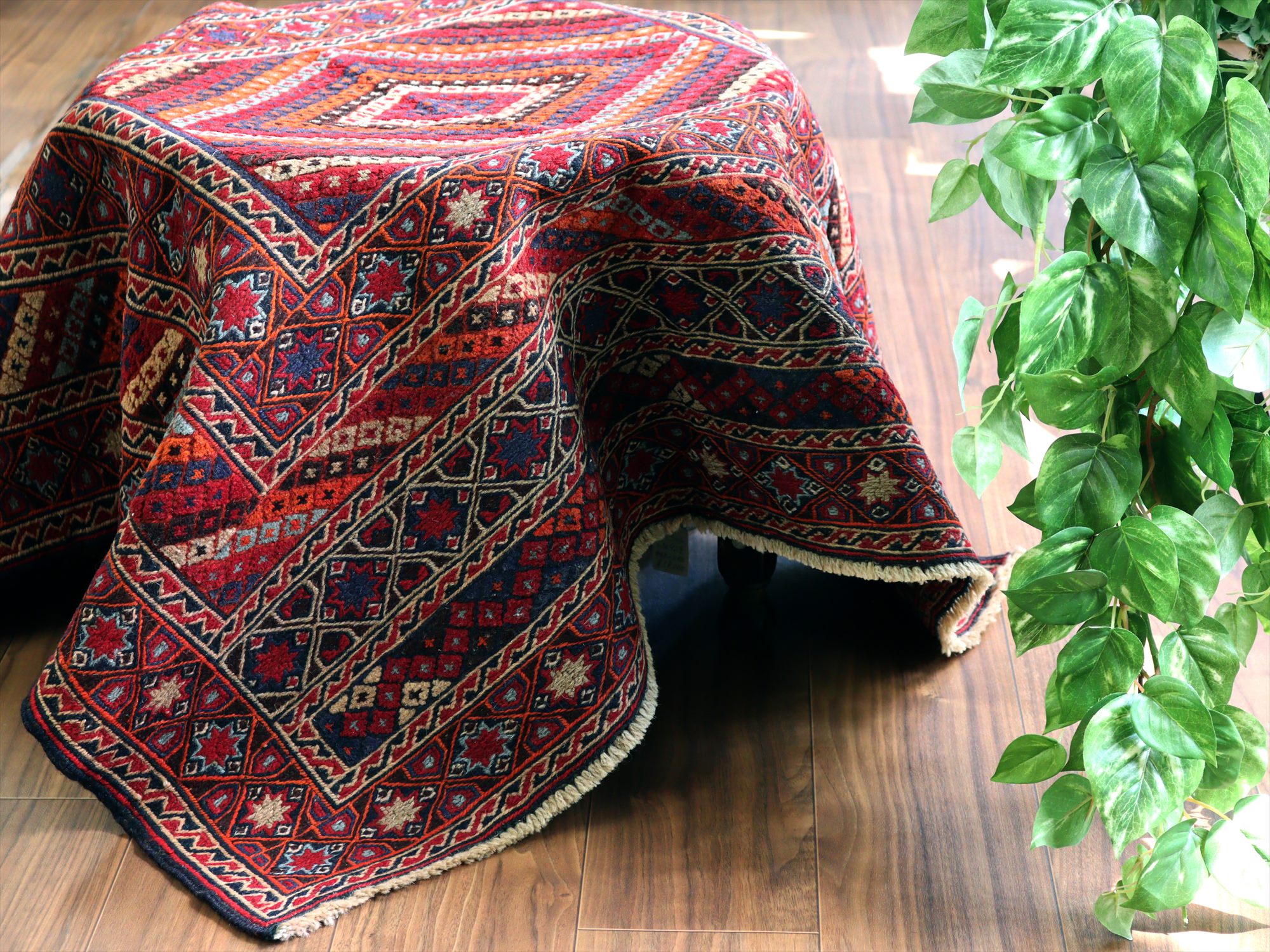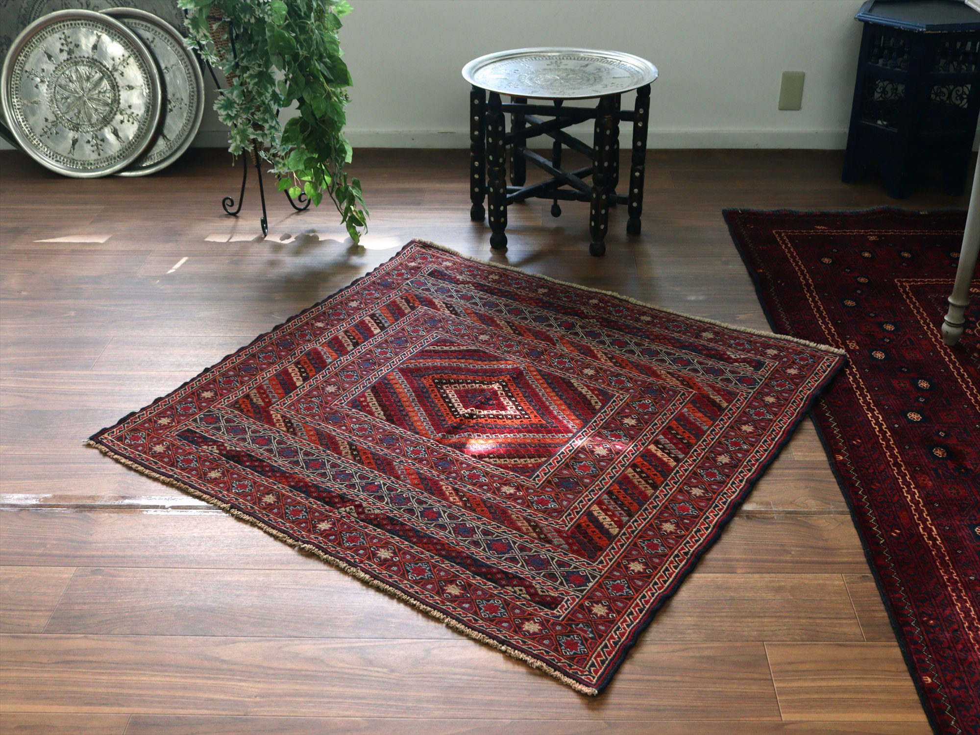 オールドキリム アフガニスタン ミシュワニ105×113cm 幾何学模様とメダリオン