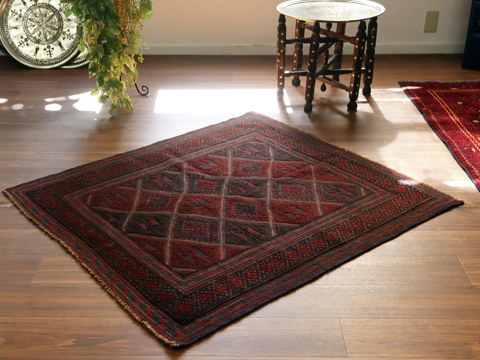 オールドキリム アフガニスタン ミシュワニ121×110cm 連続する幾何学模様