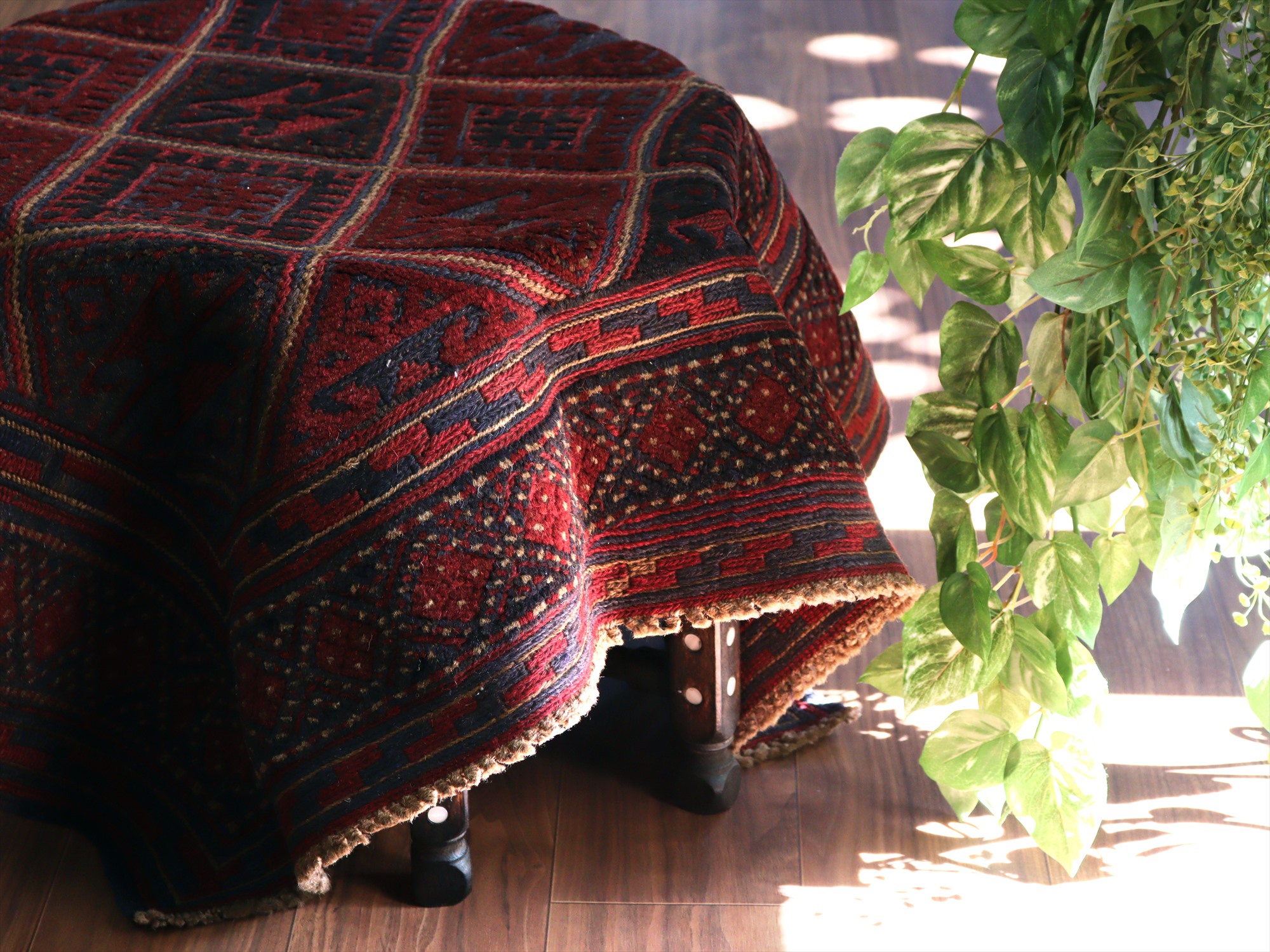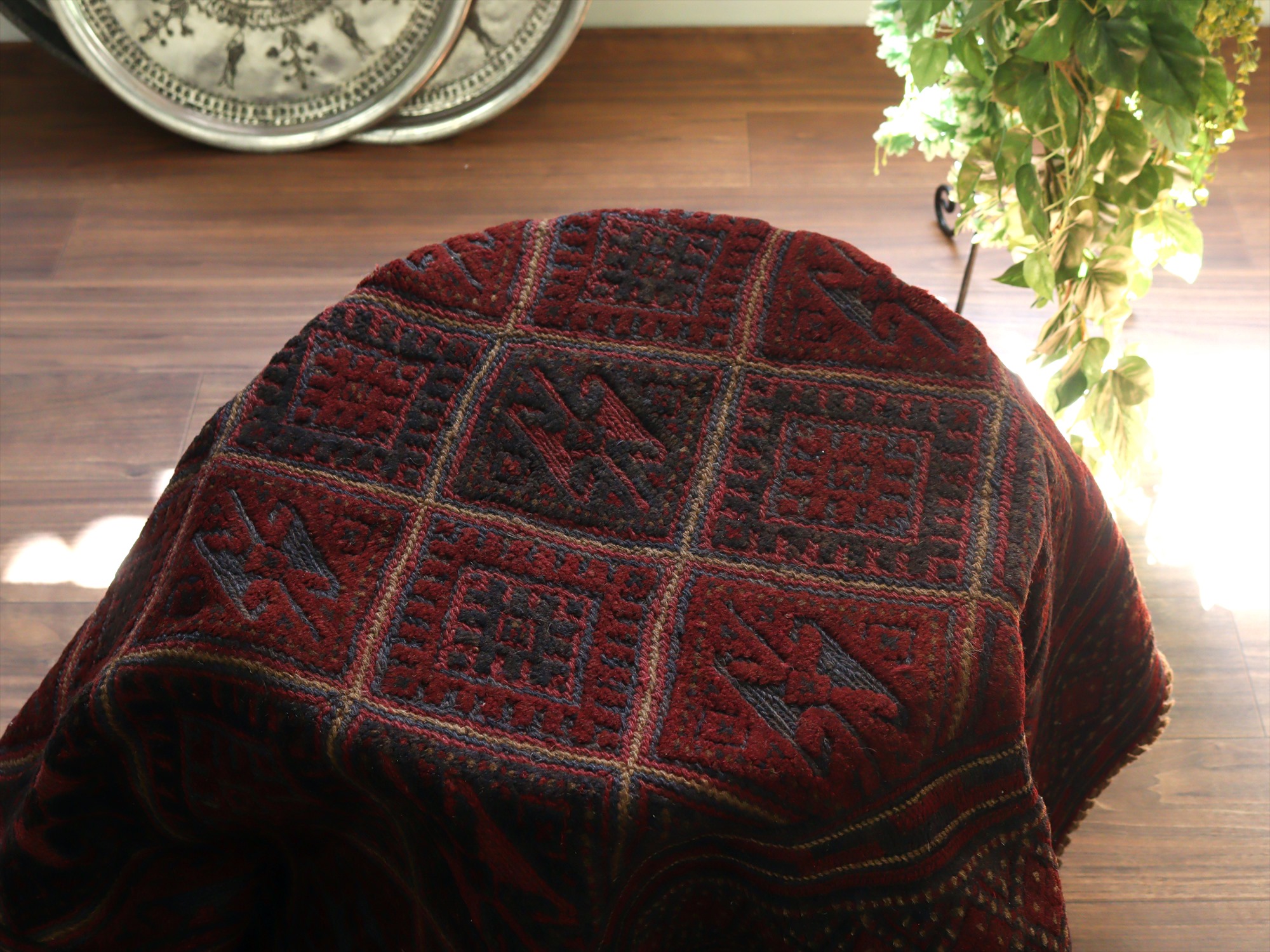ベース地はスマック織りでしっかりとした織り地です。モチーフ部分はパイル(毛足)のある織りで、表面には立体感があります。 |