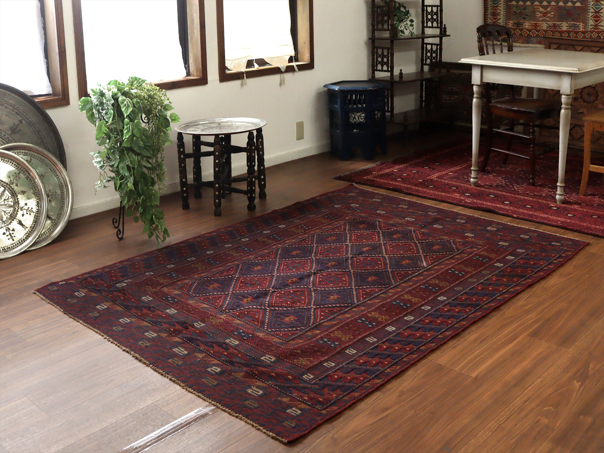 オールドキリム アフガニスタン ミシュワニ193×143cm 連続する幾何学模様