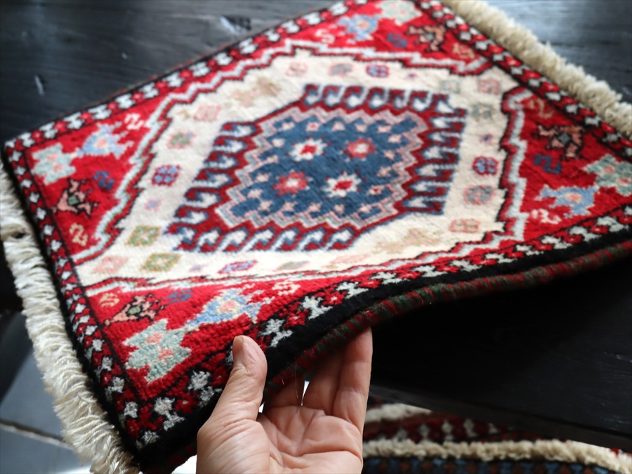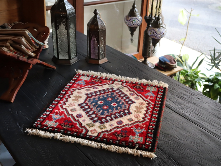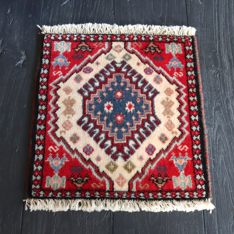 【15%OFF】ヤラメ 手織りラグ ミニサイズ /トライバルラグ42×40cm