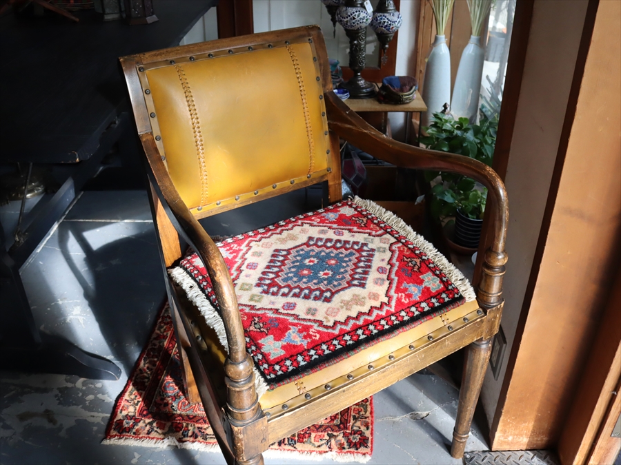 | 30cm角のミニサイズのラグ。小さいながらも、織りはしっかりしていて本格的です。多少ゆがみが気になりますが、ゆがみも含めて素朴な感じをお楽しみいただければと思います。 |