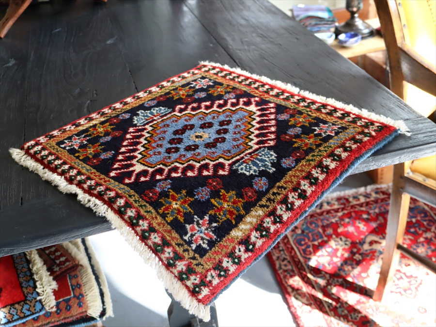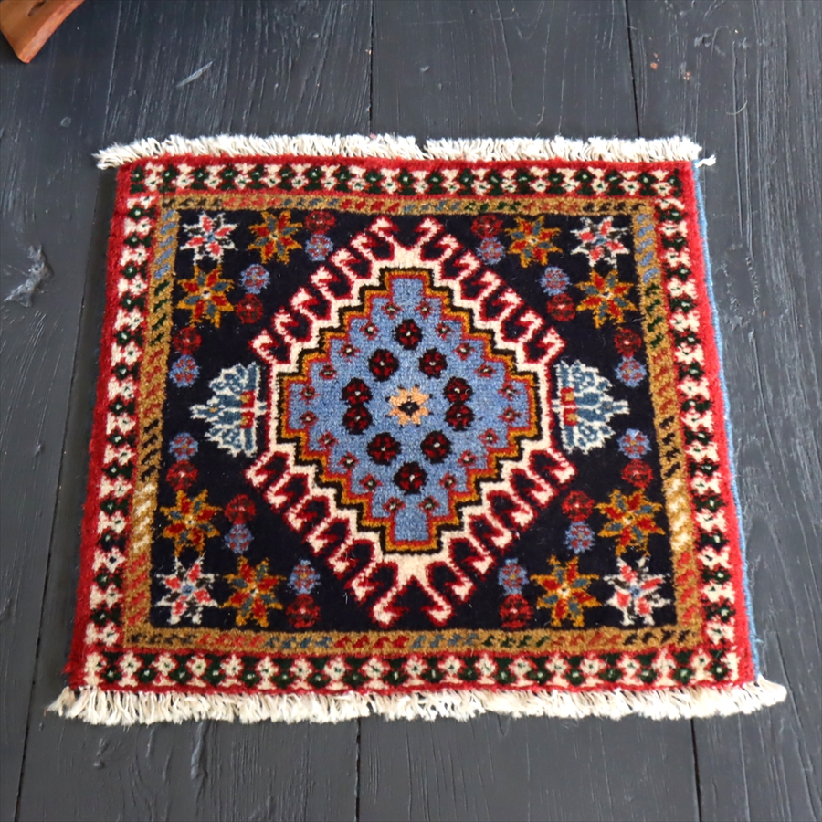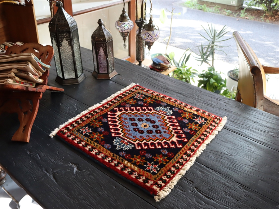【15%OFF】ヤラメ 手織りラグ ミニサイズ /トライバルラグ38×41cm