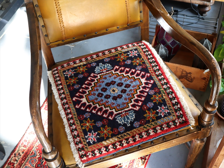 | 30cm角のミニサイズのラグ。小さいながらも、織りはしっかりしていて本格的です。多少ゆがみが気になりますが、ゆがみも含めて素朴な感じをお楽しみいただければと思います。 |