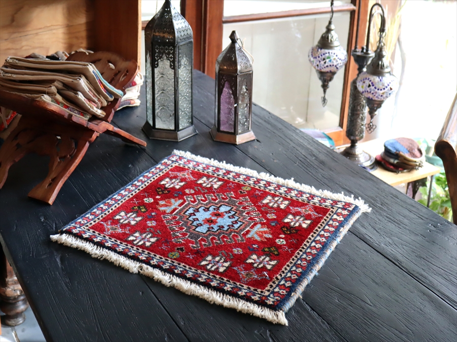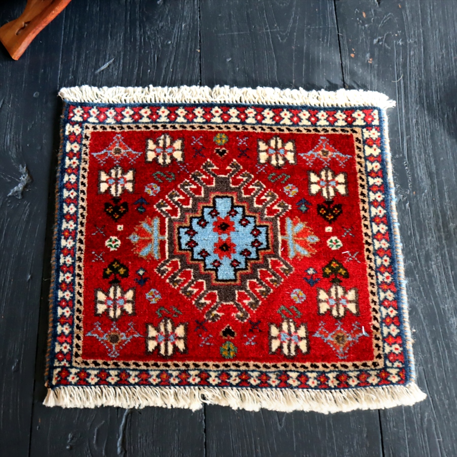 【15%OFF】ヤラメ 手織りラグ ミニサイズ /トライバルラグ38×42cm