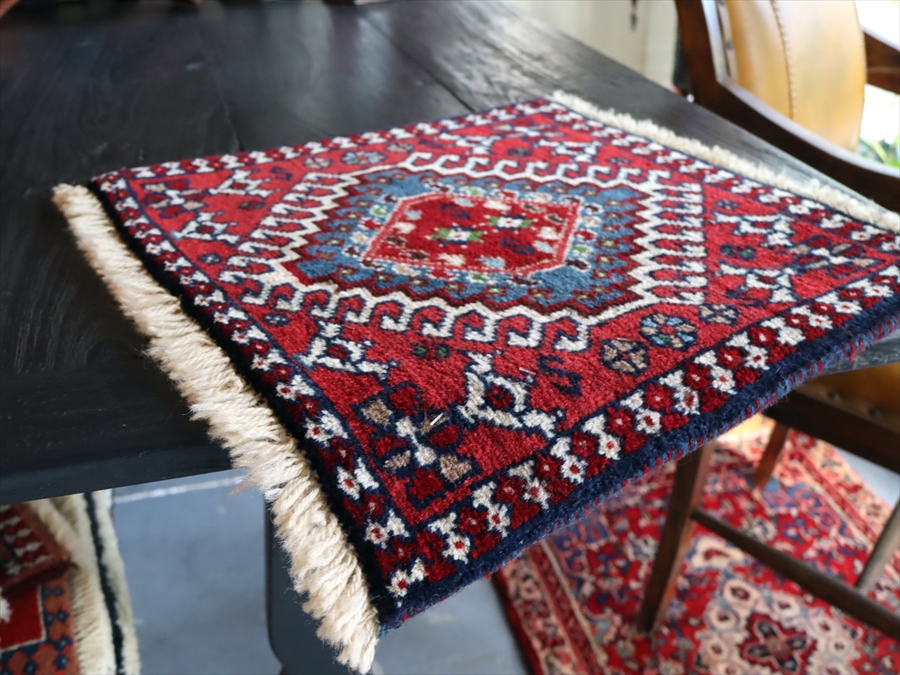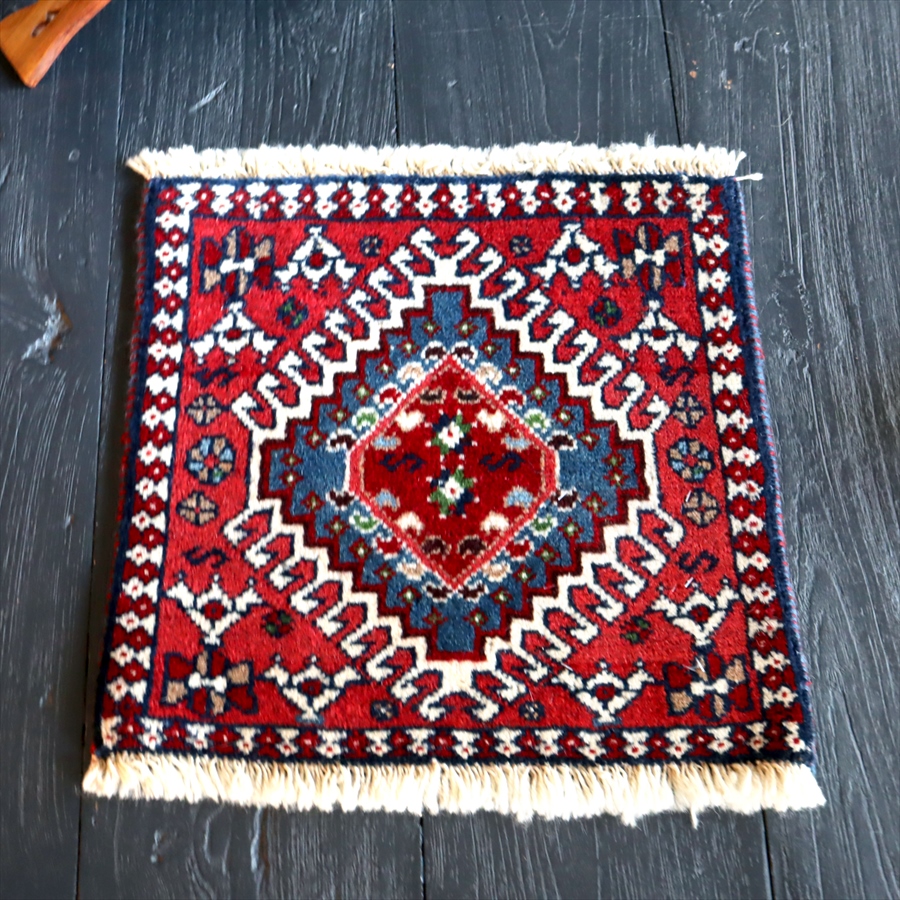 【15%OFF】ヤラメ 手織りラグ ミニサイズ /トライバルラグ38×40cm