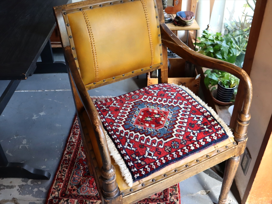 | 30cm角のミニサイズのラグ。小さいながらも、織りはしっかりしていて本格的です。多少ゆがみが気になりますが、ゆがみも含めて素朴な感じをお楽しみいただければと思います。 |