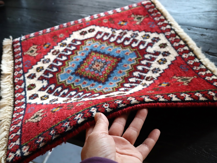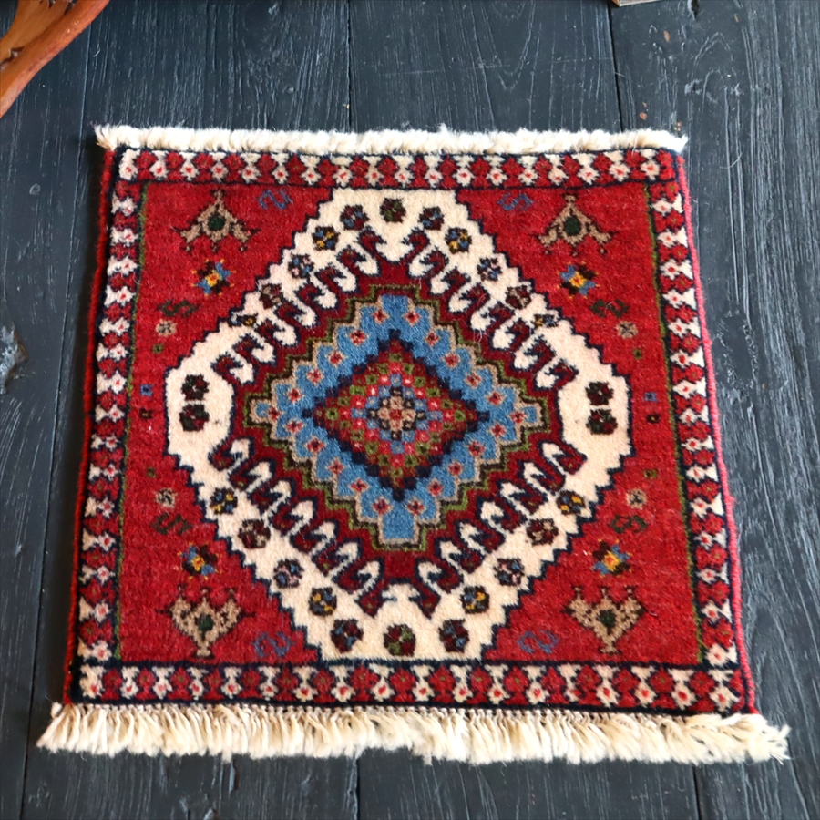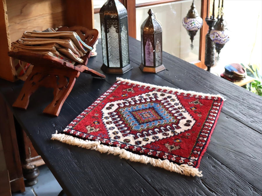 【15%OFF】ヤラメ 手織りラグ ミニサイズ /トライバルラグ38×40cm