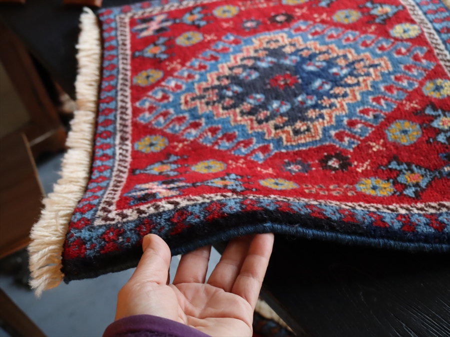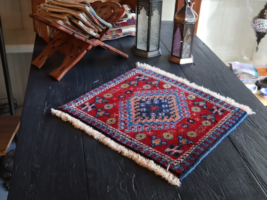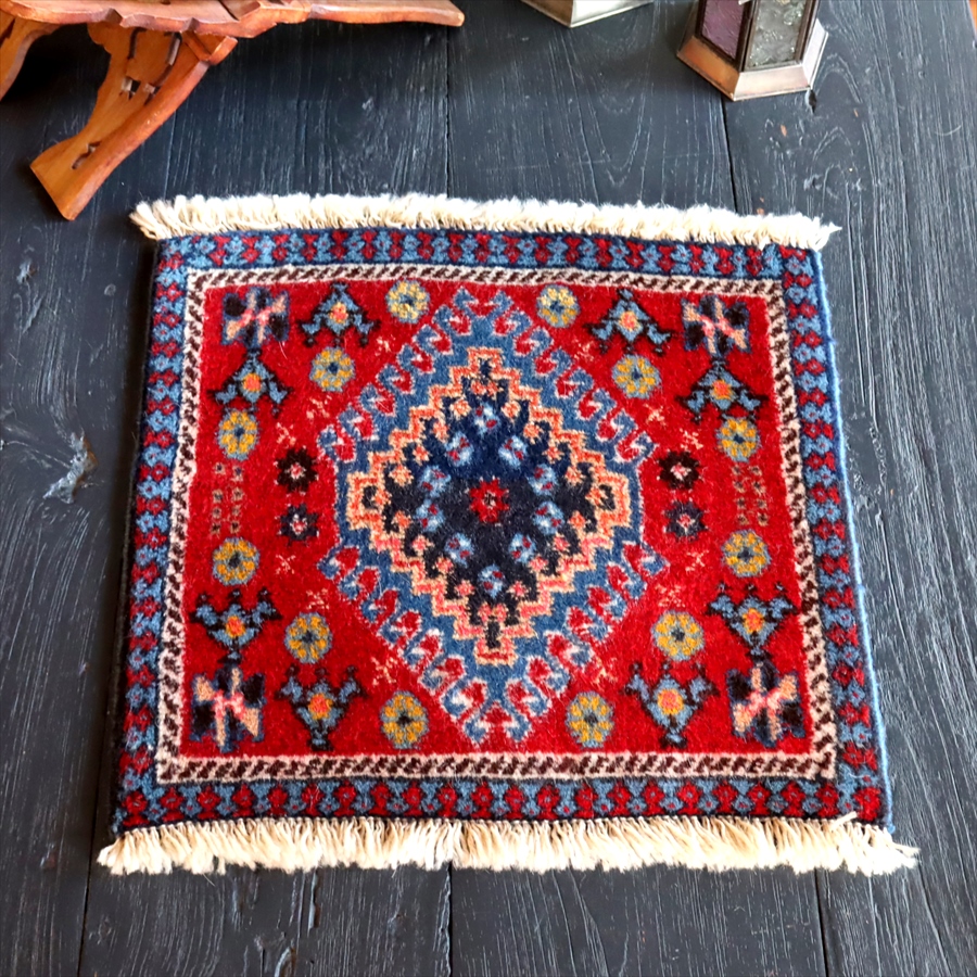 【15%OFF】ヤラメ 手織りラグ ミニサイズ /トライバルラグ40×43cm
