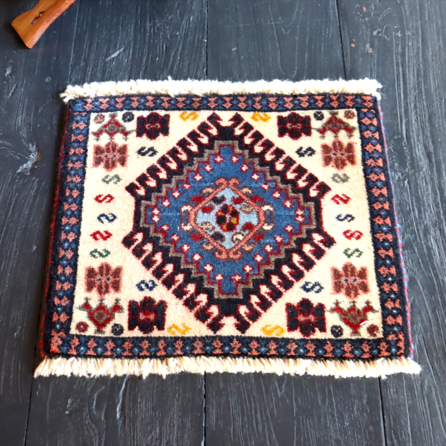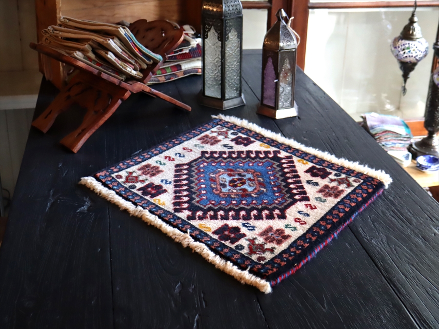 【15%OFF】ヤラメ 手織りラグ ミニサイズ /トライバルラグ37×42cm