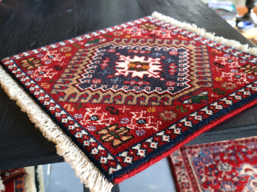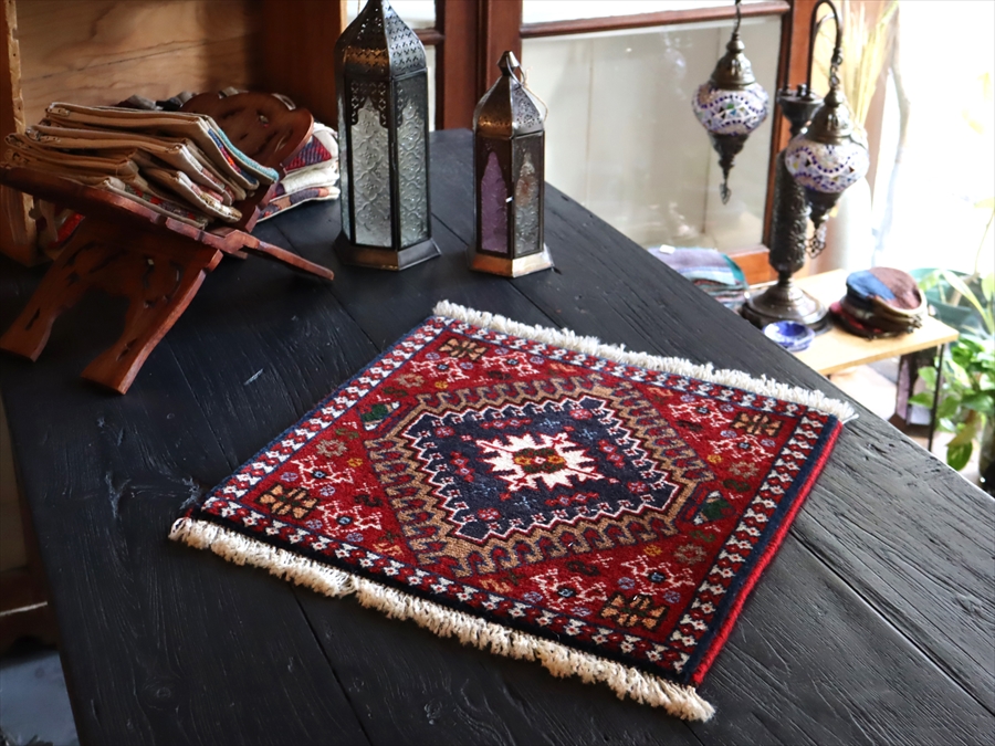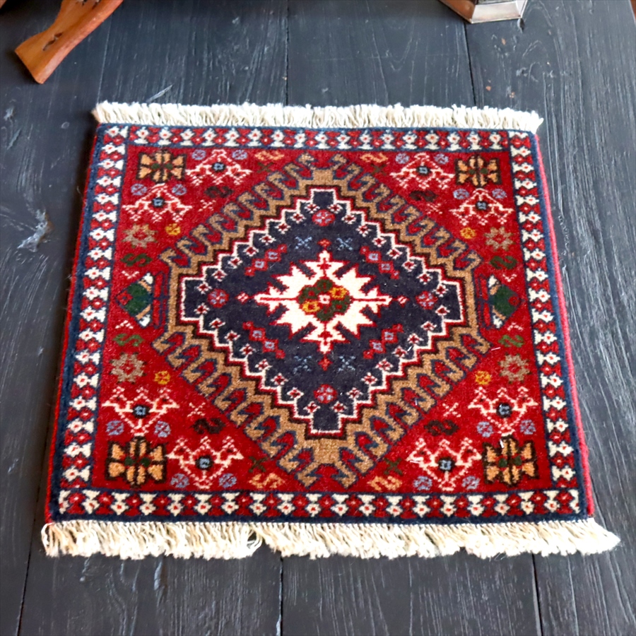 【15%OFF】ヤラメ 手織りラグ ミニサイズ /トライバルラグ41×43cm