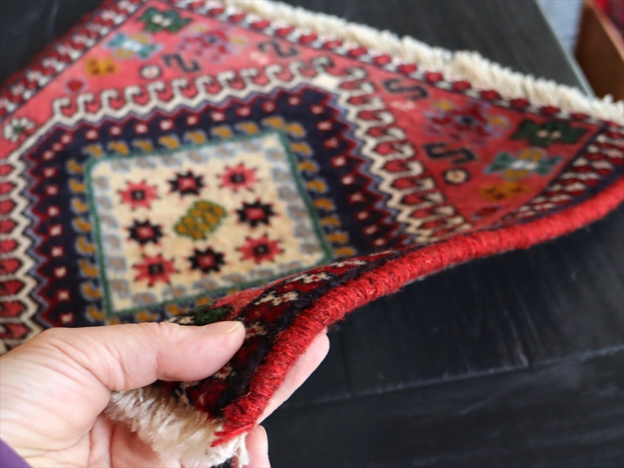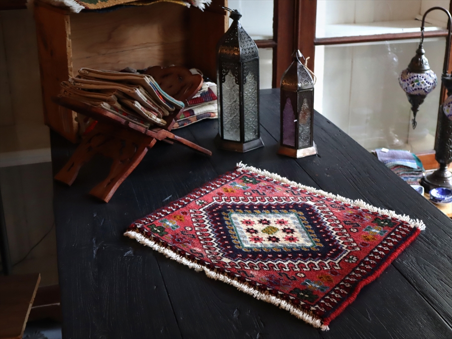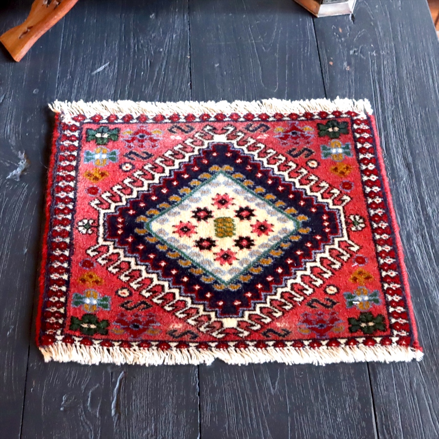 【15%OFF】ヤラメ 手織りラグ ミニサイズ /トライバルラグ37×44cm