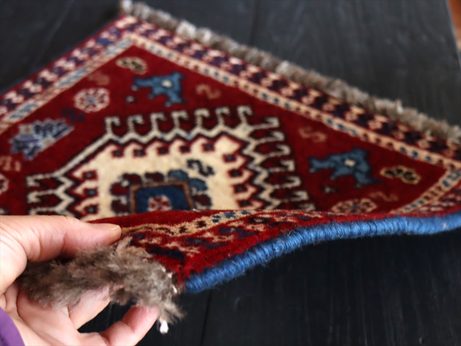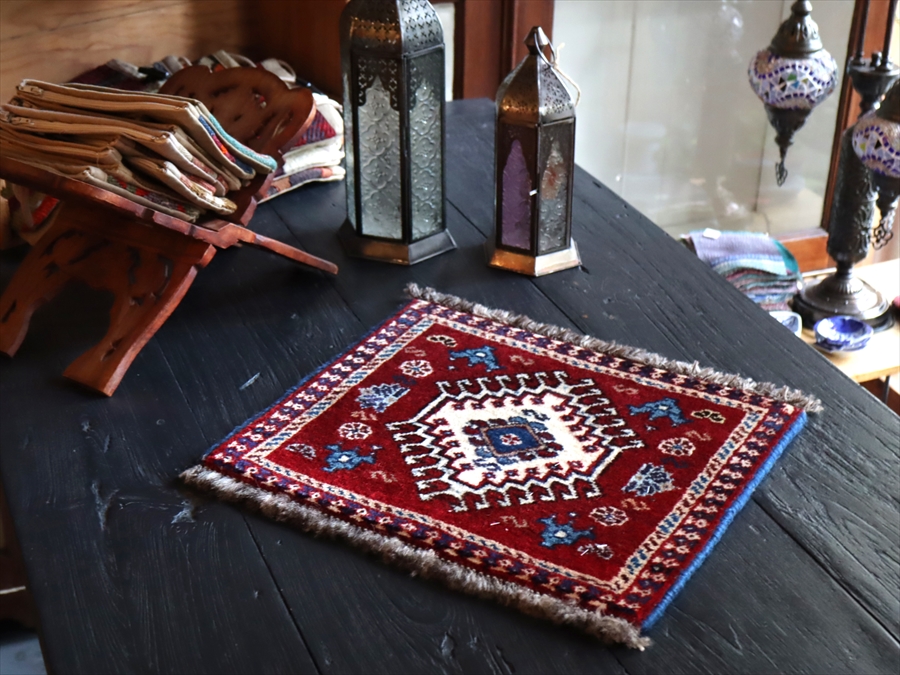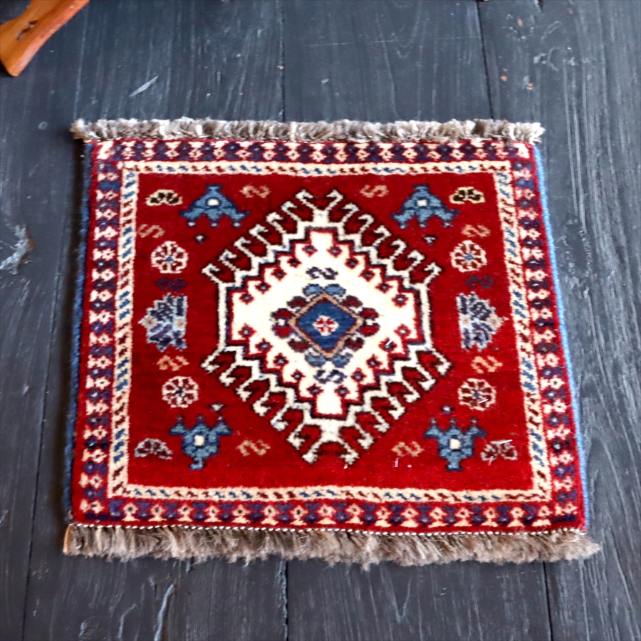 【15%OFF】ヤラメ 手織りラグ ミニサイズ /トライバルラグ37×41cm