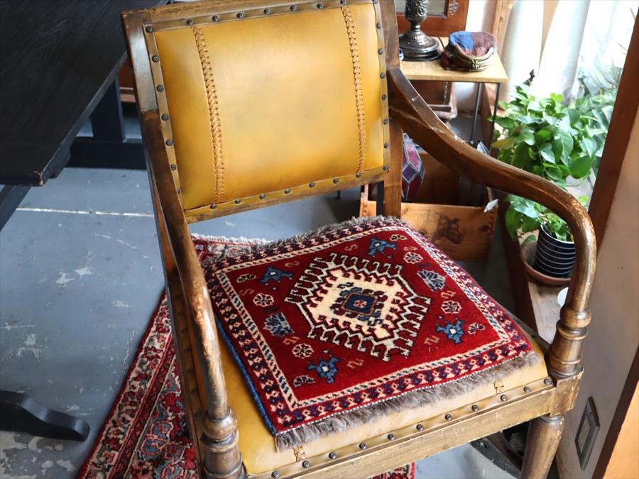 | 30cm角のミニサイズのラグ。小さいながらも、織りはしっかりしていて本格的です。多少ゆがみが気になりますが、ゆがみも含めて素朴な感じをお楽しみいただければと思います。 |