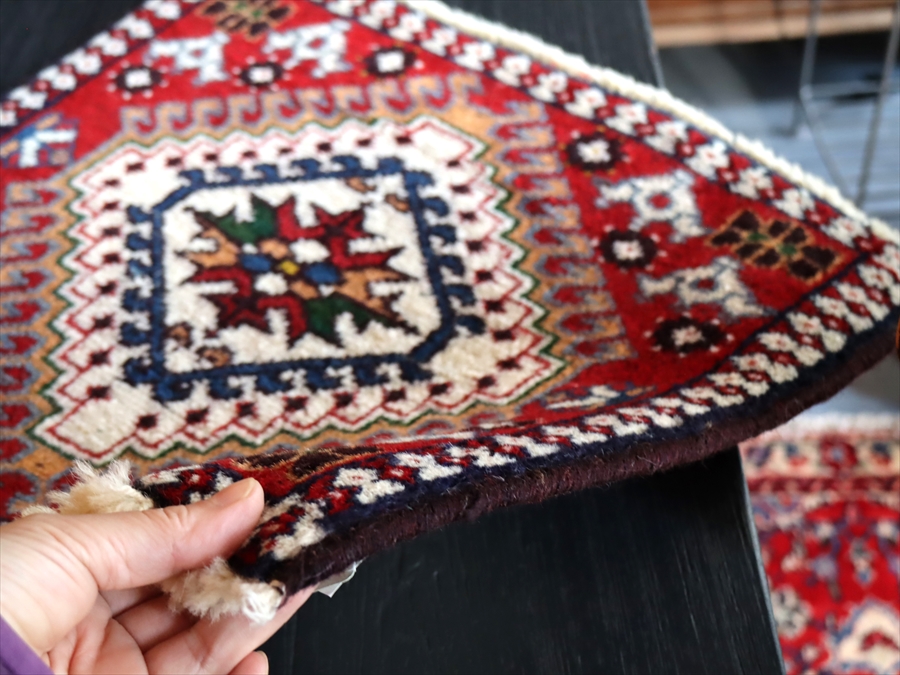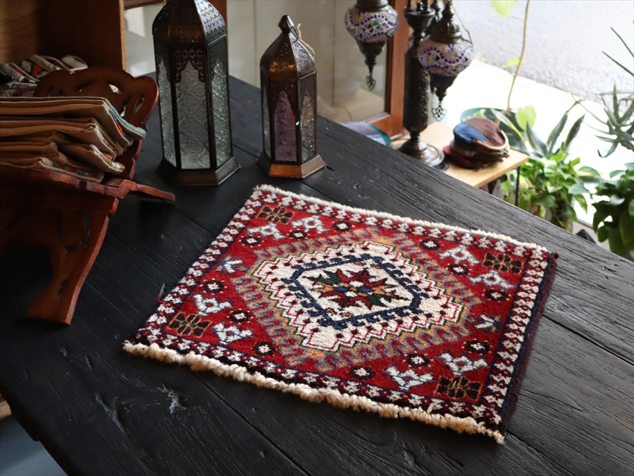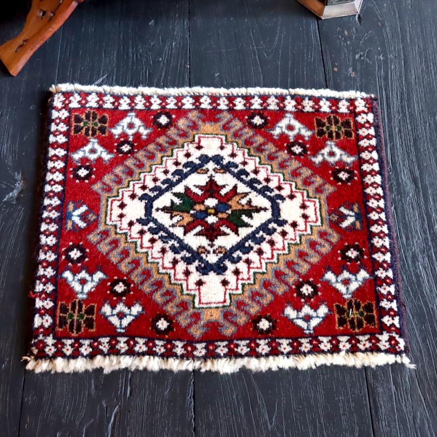 【15%OFF】ヤラメ 手織りラグ ミニサイズ /トライバルラグ38×44cm