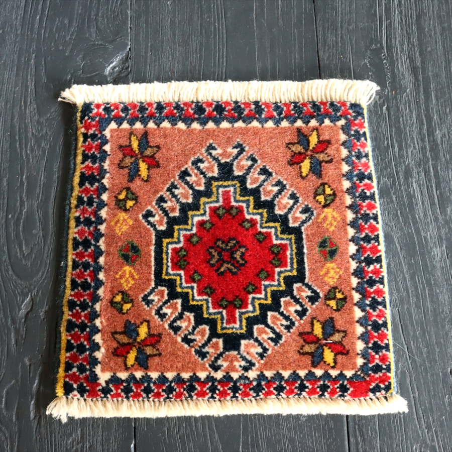 【15%OFF】ヤラメ 手織りラグ ミニサイズ /トライバルラグ32×31cm