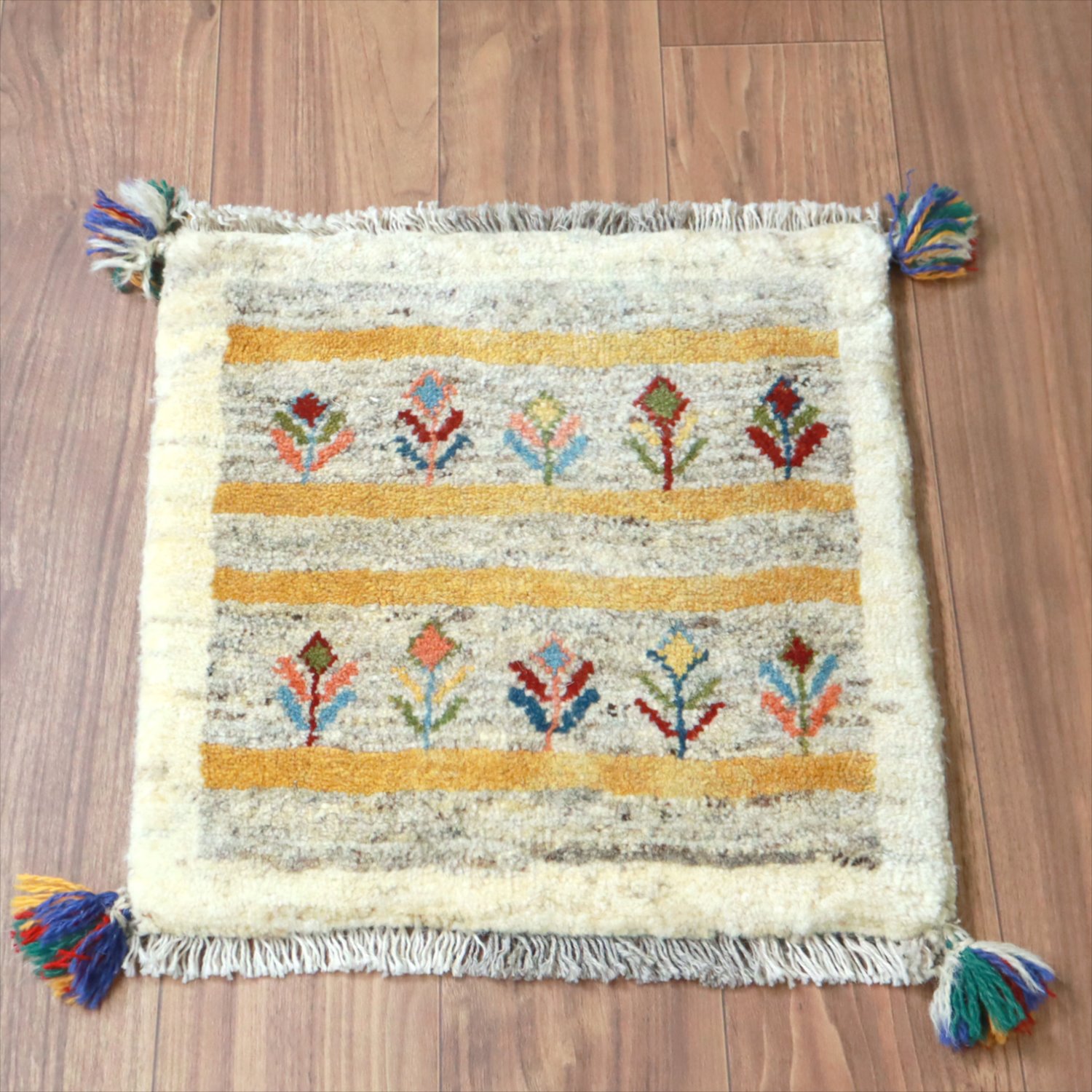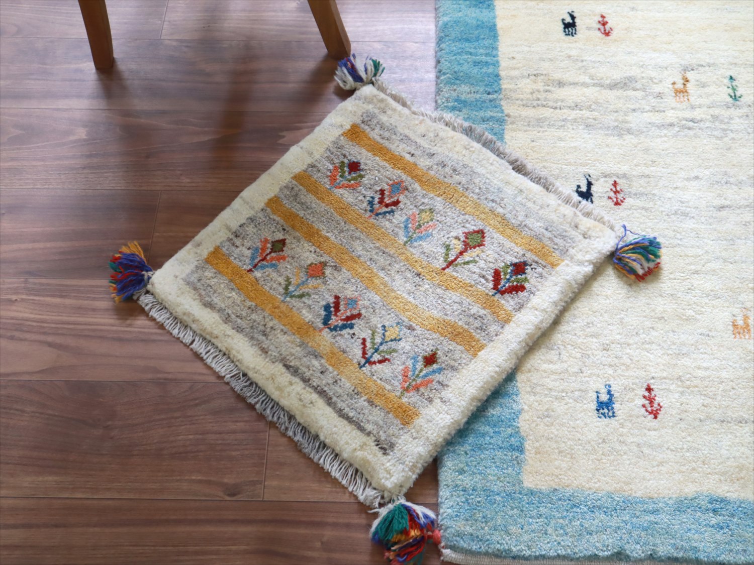 ギャッベ イラン産手織り 座布団サイズ 46x46cm