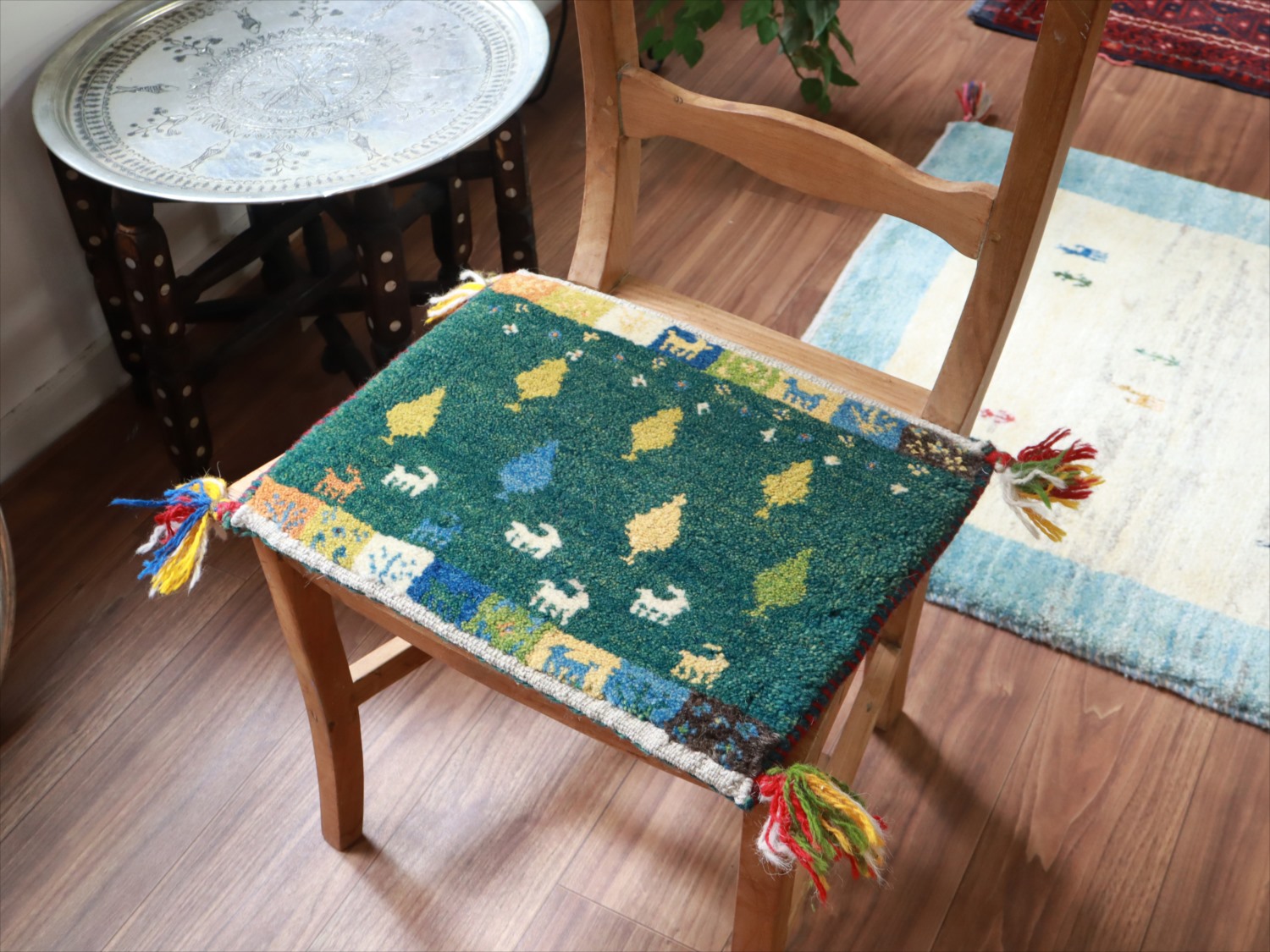 ギャッベ イラン産手織り 座布団サイズ 35x42cm グリーン