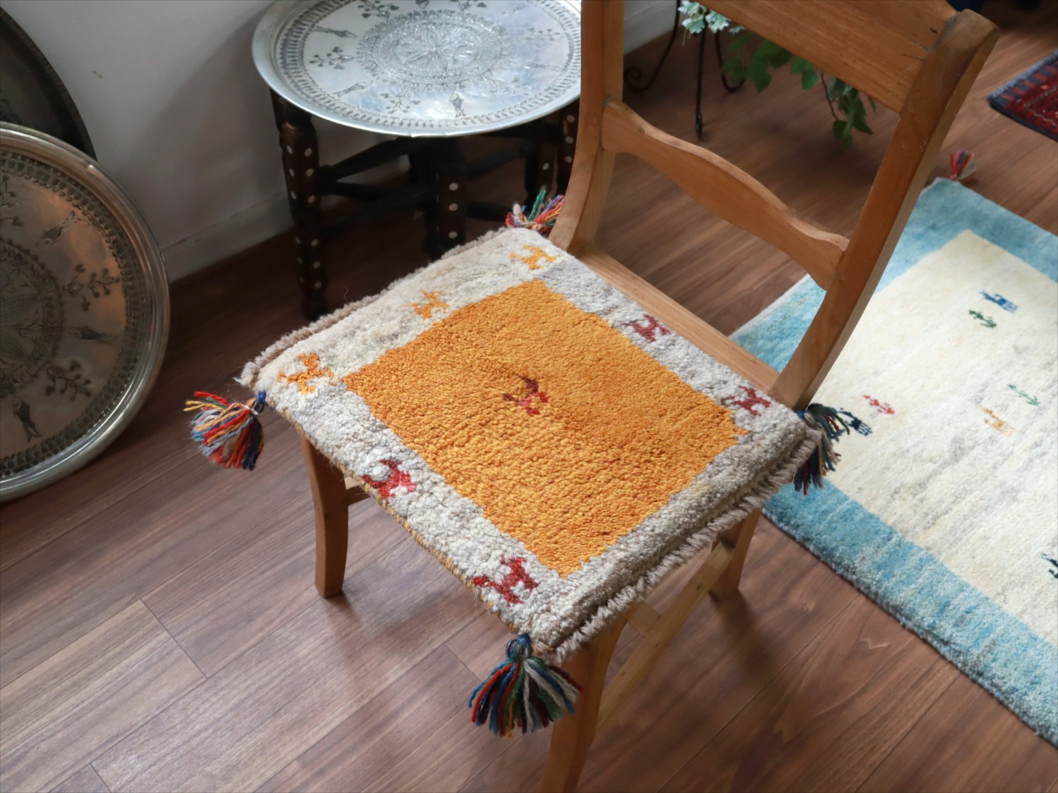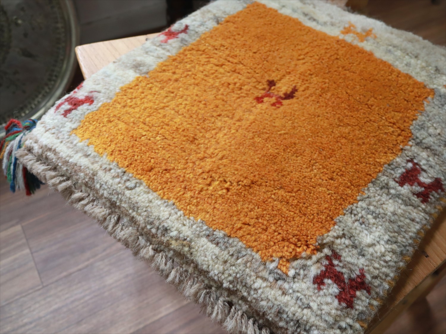 【15%OFF】ギャッベ イラン産手織り 座布団サイズ 40x36cm イエロー ナチュラル