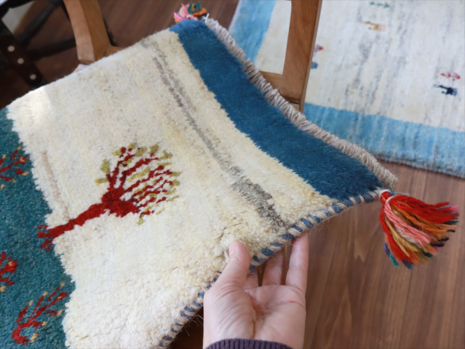 ギャッベ イラン産手織り 座布団サイズ 41x45cm