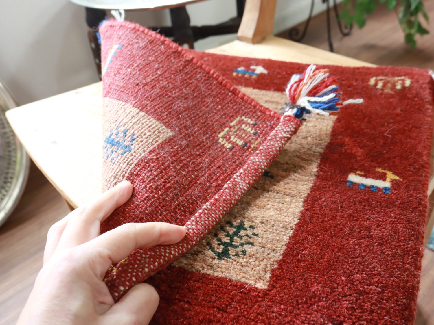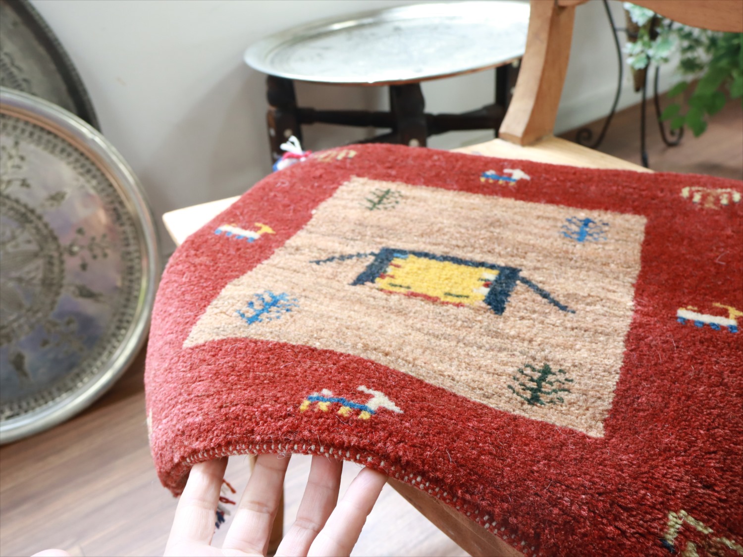 ギャッベ イラン産手織り 座布団サイズ 40x40cm