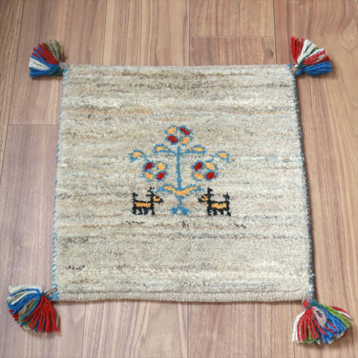 ギャッベ イラン産手織り 座布団サイズ 40x39cm ナチュラルアイボリー