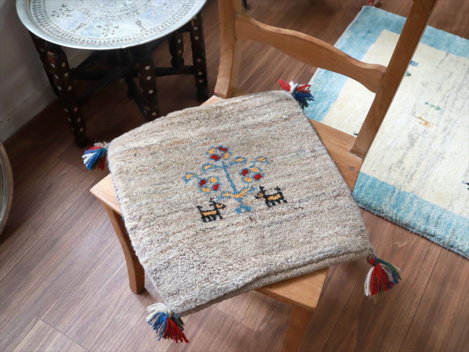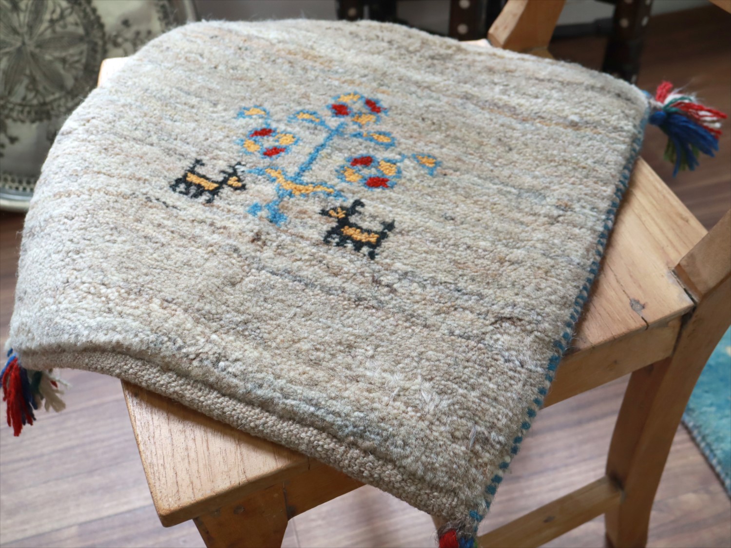 - ギャッベ イラン産手織り 座布団サイズ 40x39cm ナチュラルアイボリー