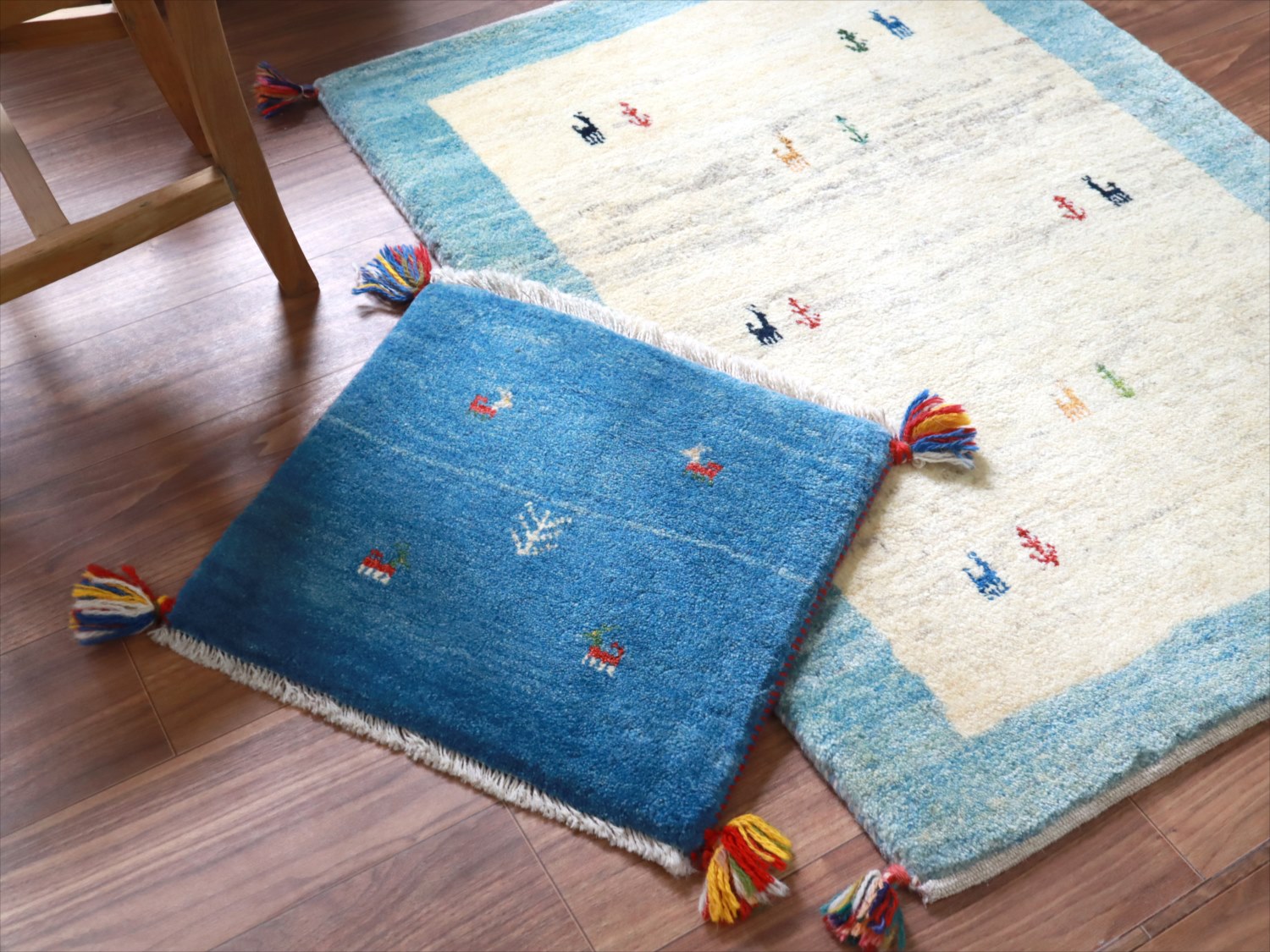 ギャッベ イラン産手織り 座布団サイズ 41x45cm ブルー