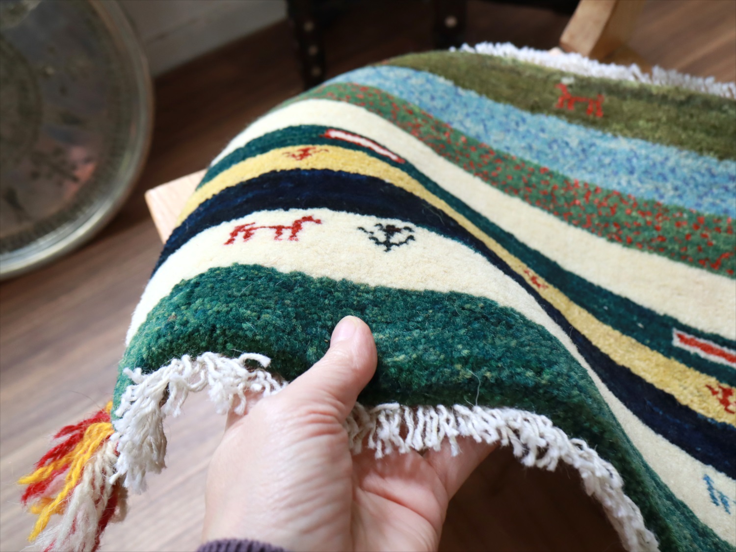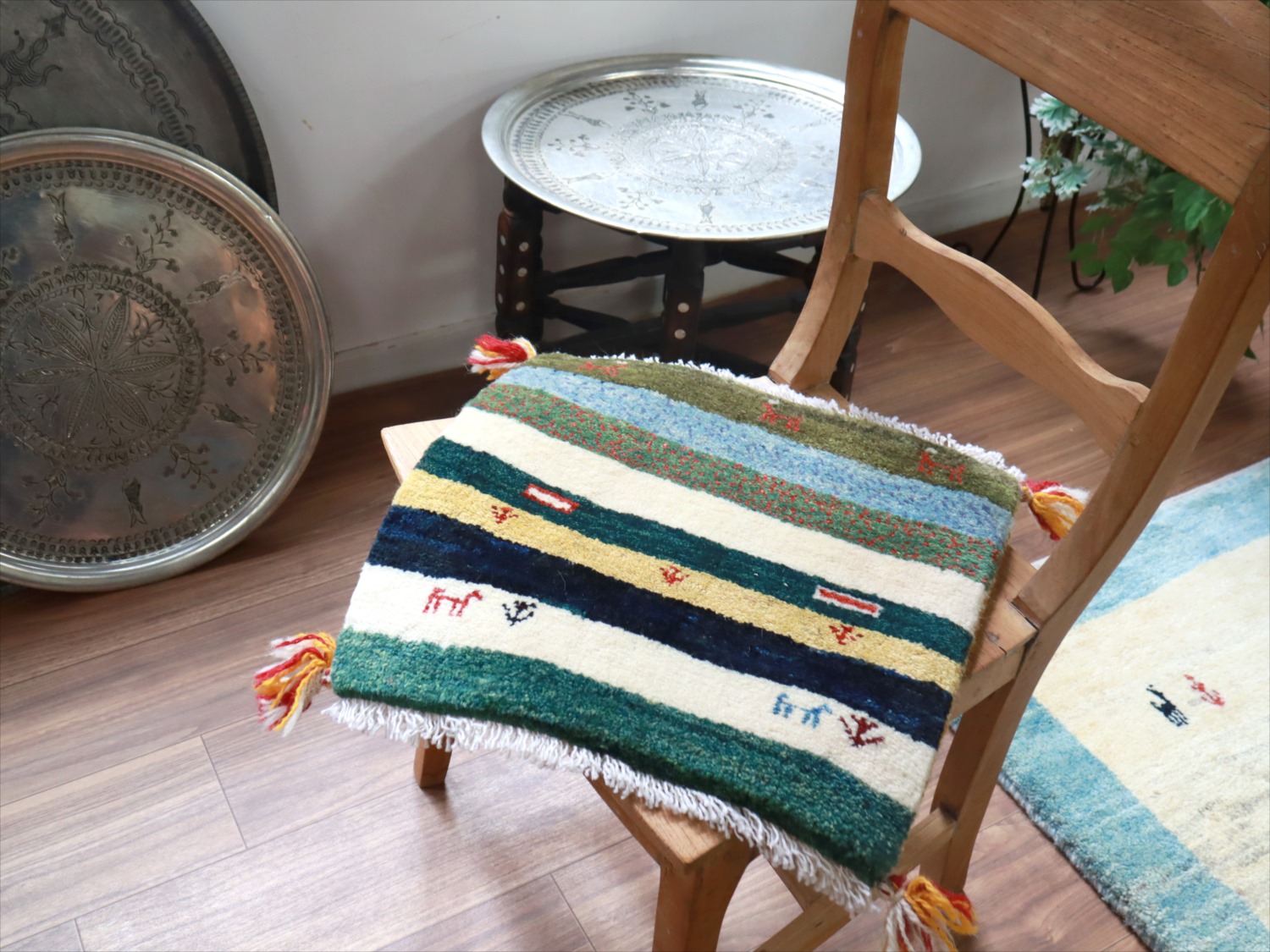ギャッベ イラン産手織り 座布団サイズ 40x41cm