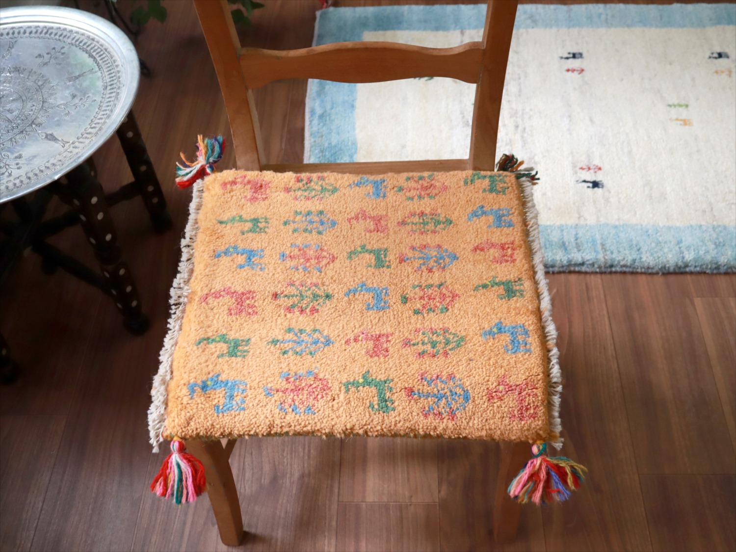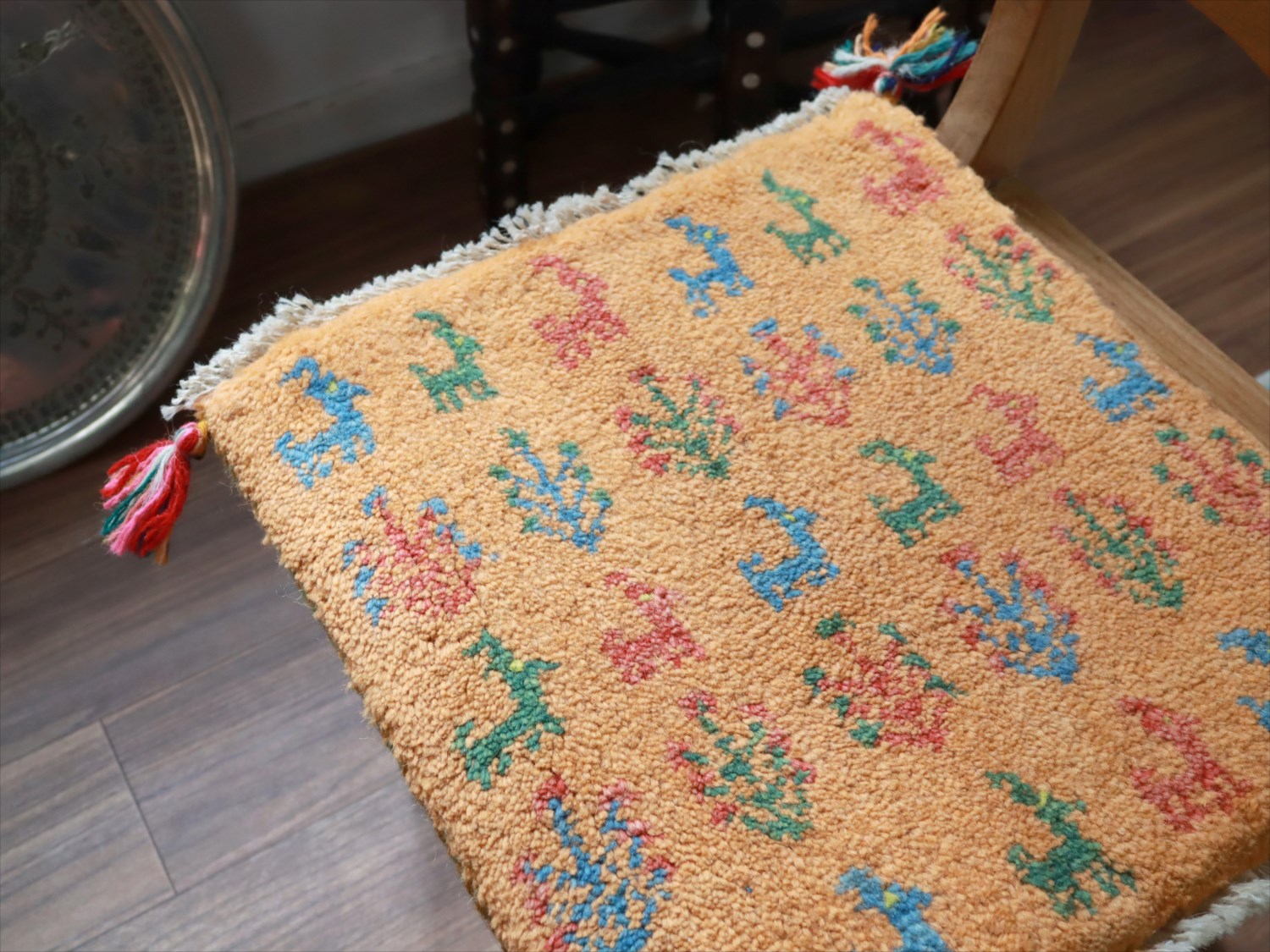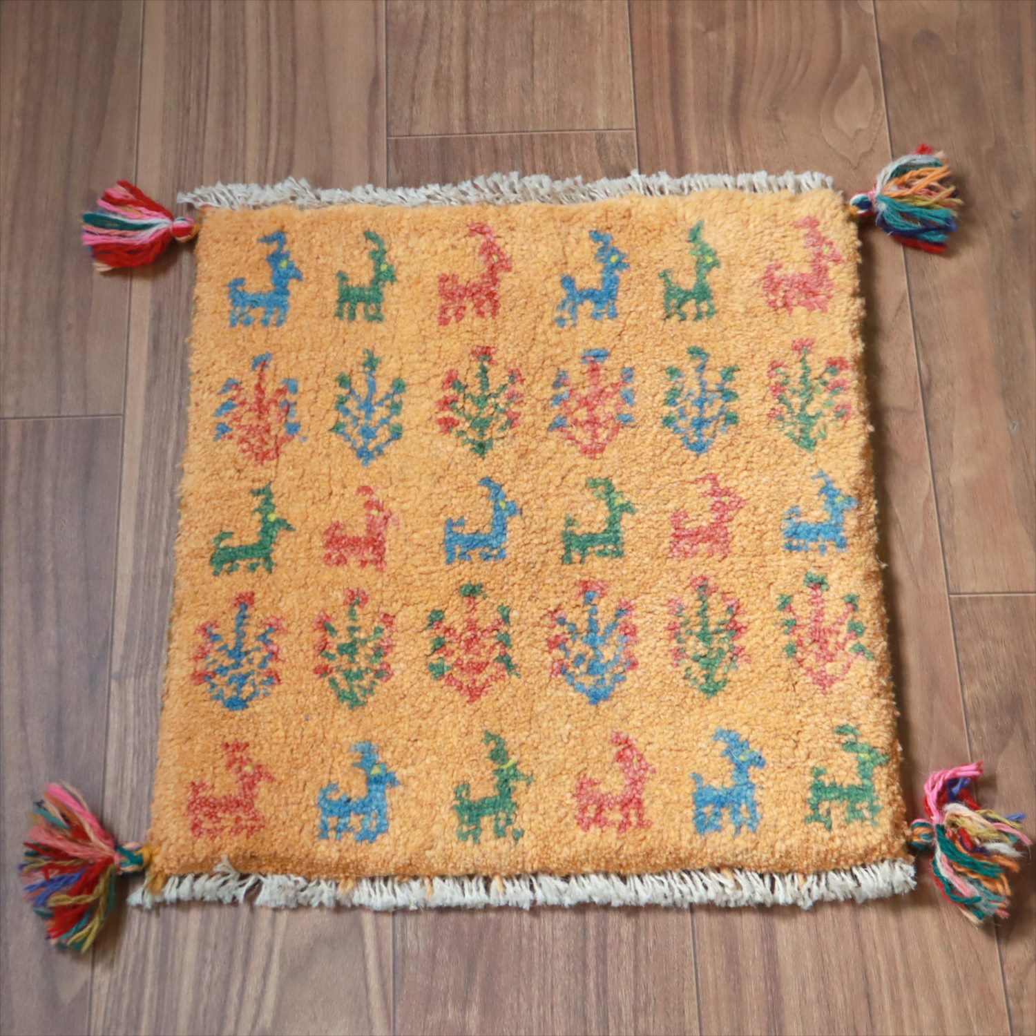 - 【15%OFF】ギャッベ イラン産手織り 座布団サイズ 40x39cm イエローオレンジ