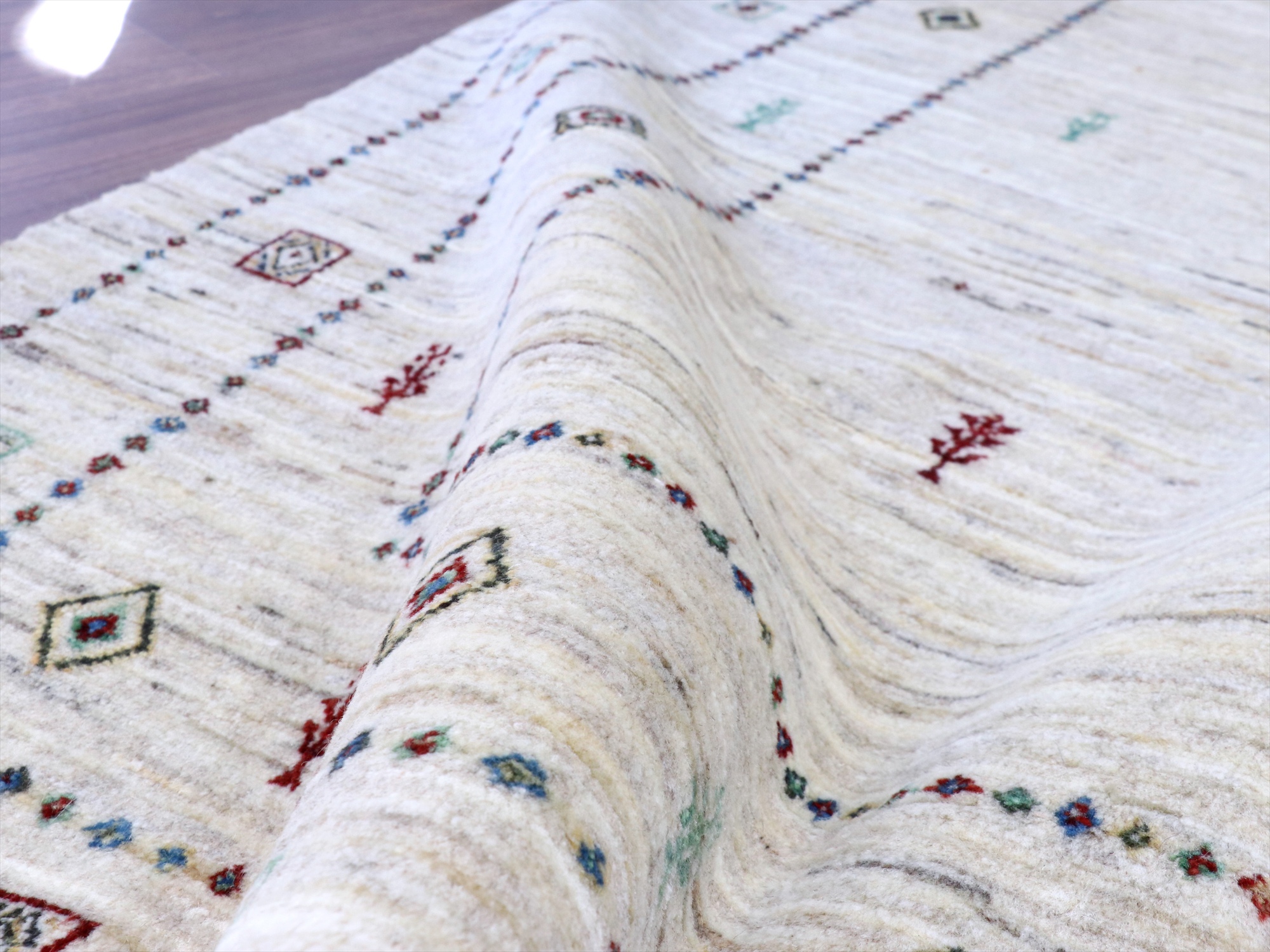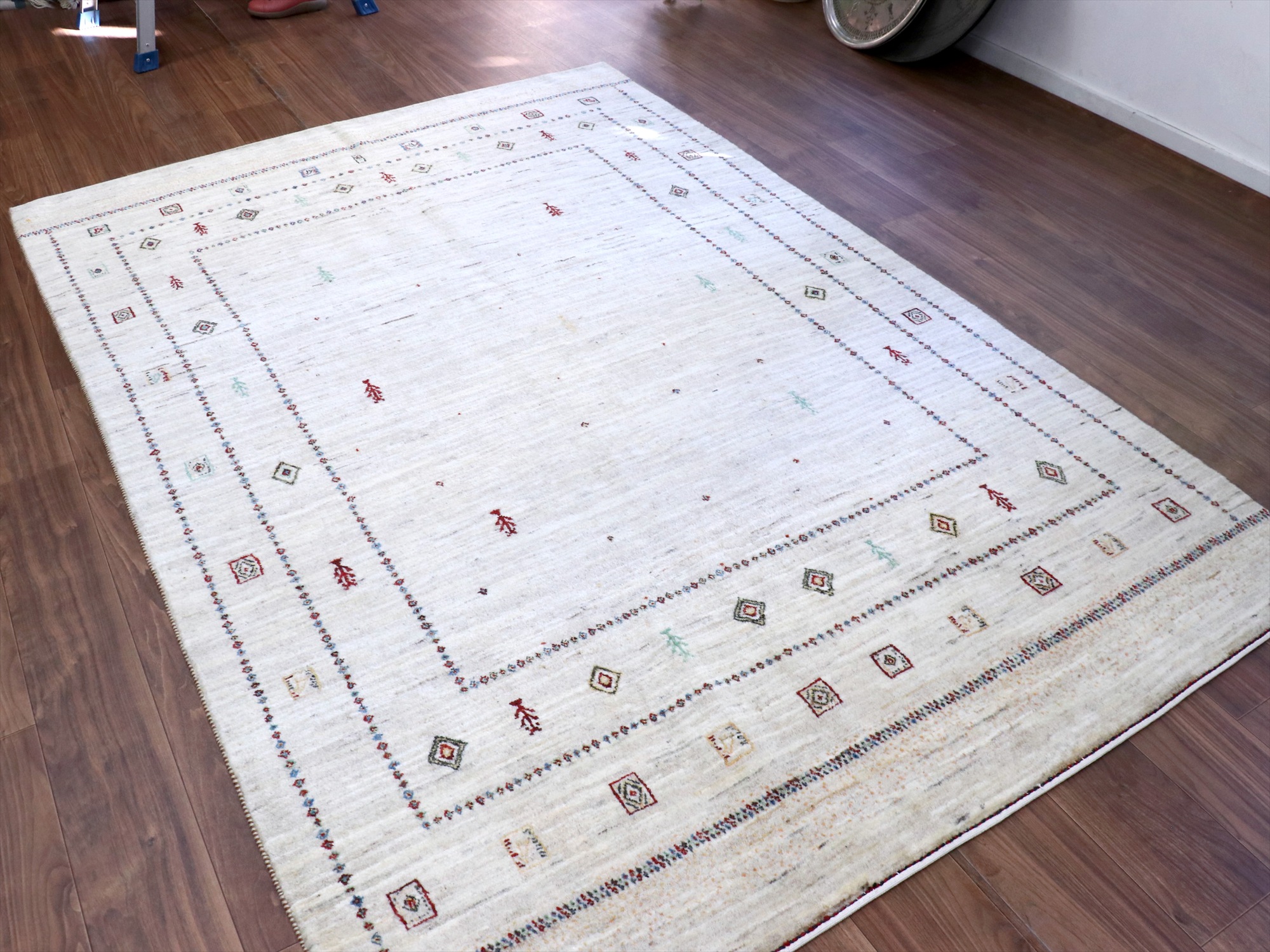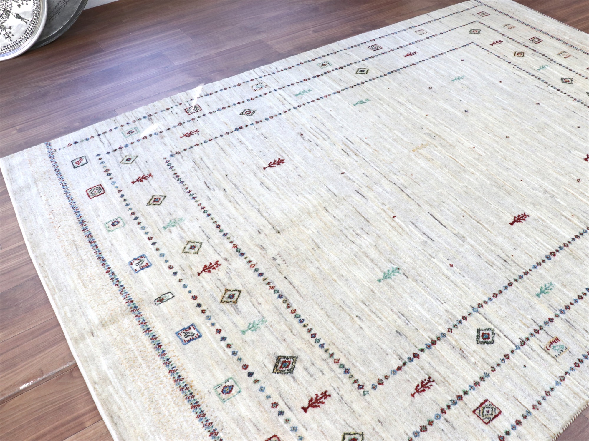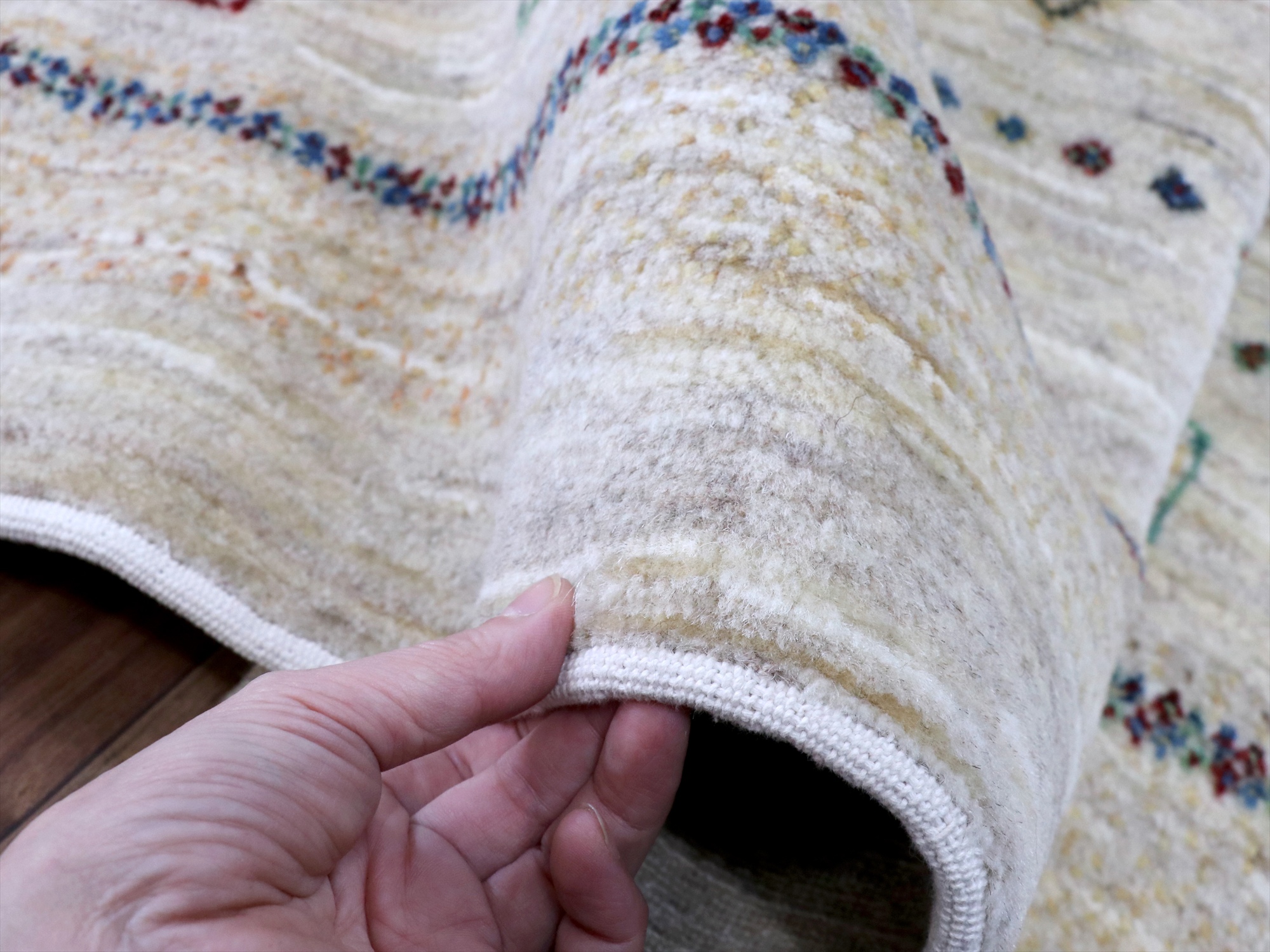 - ギャッベ イラン 手織り リズバフト 細かな織り 234x164cm 無染色のアイボリー 生命の木モチーフ