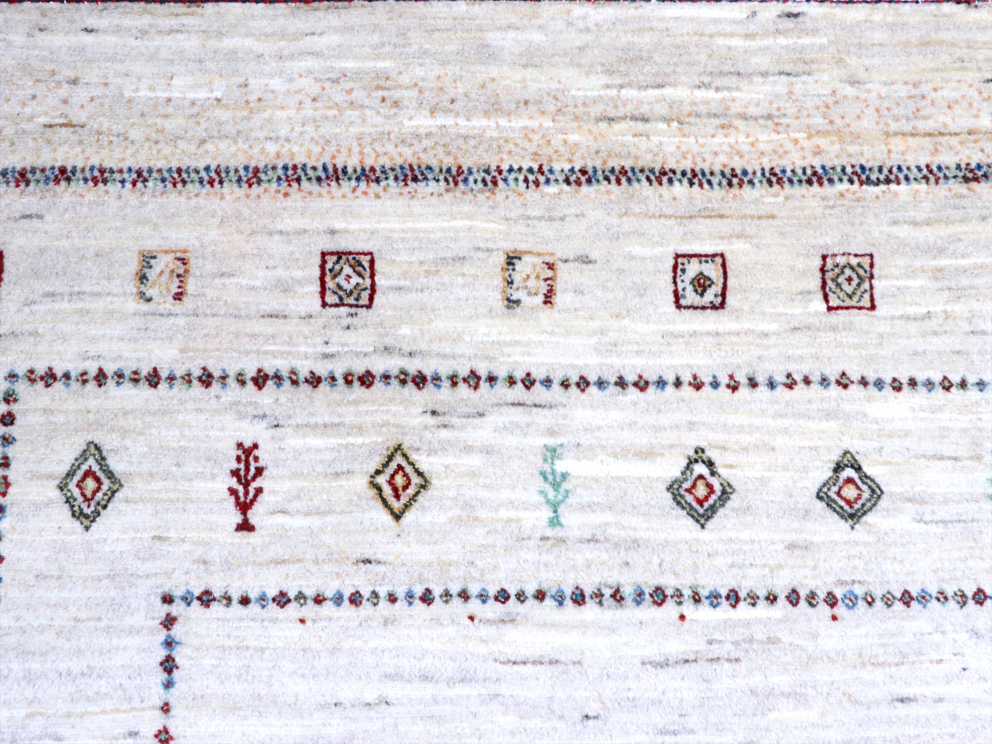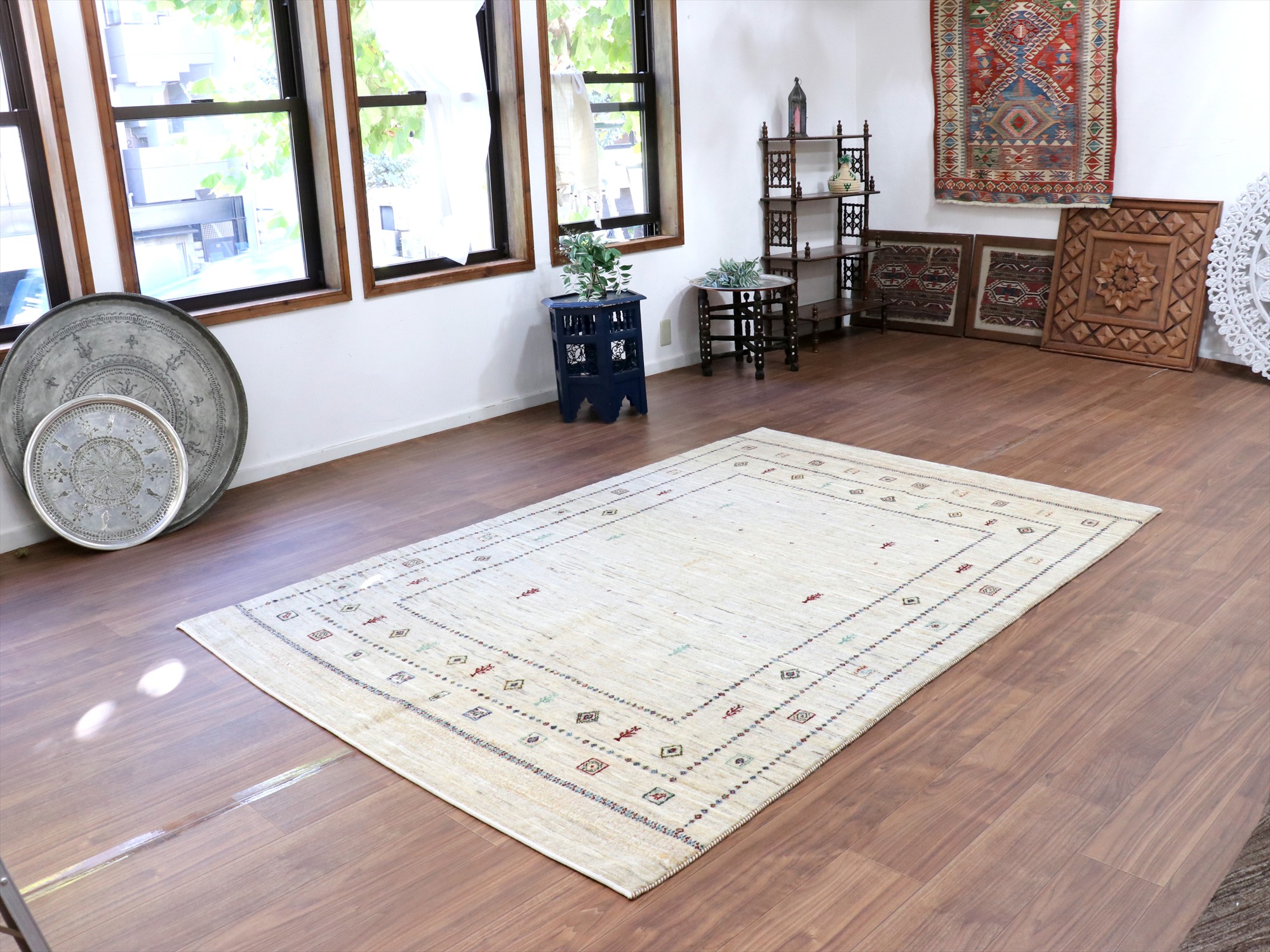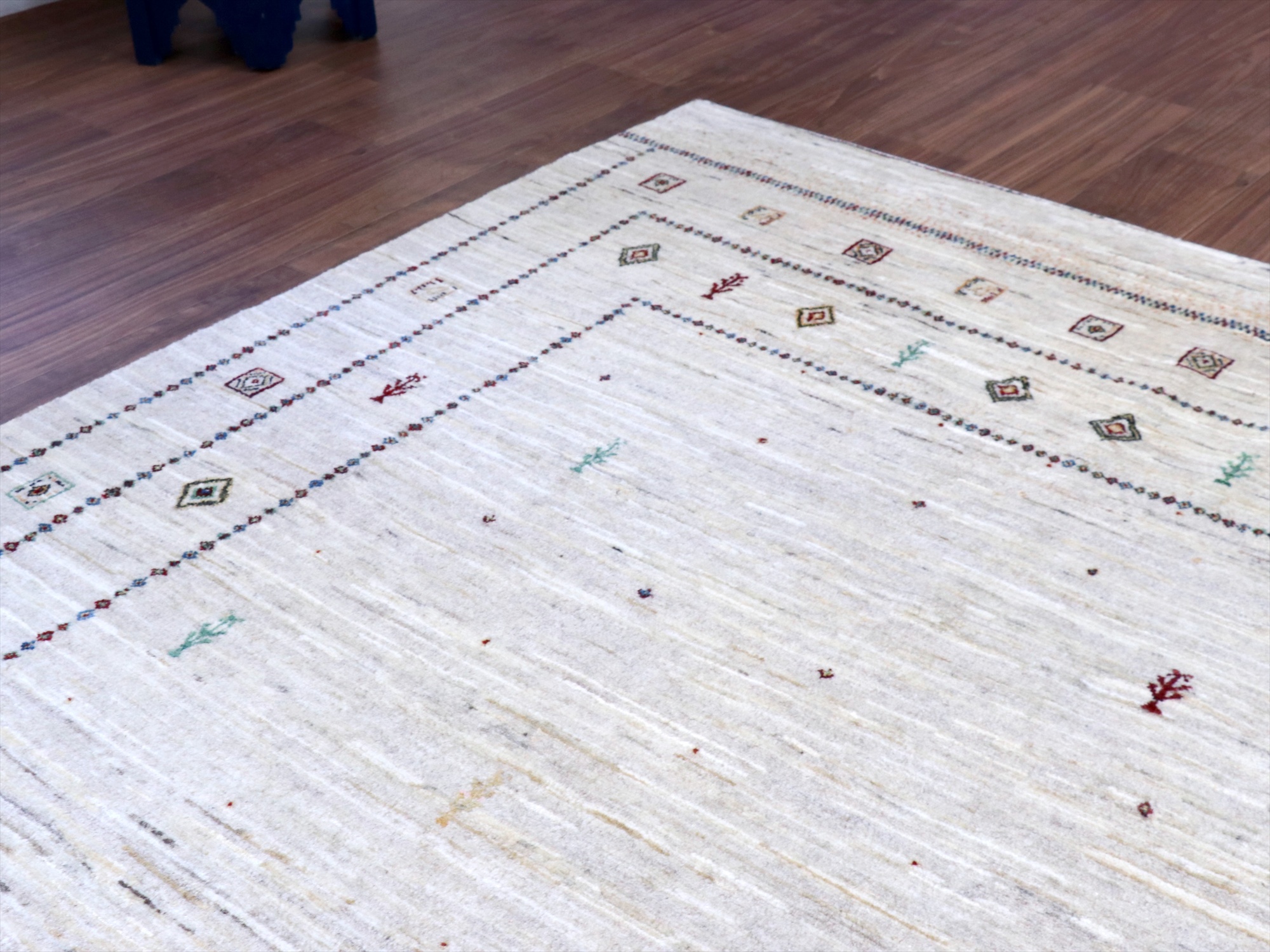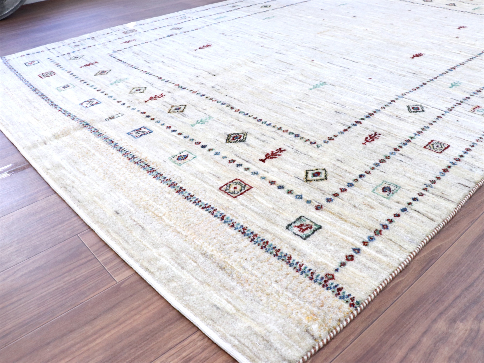 - ギャッベ イラン 手織り リズバフト 細かな織り 234x164cm 無染色のアイボリー 生命の木モチーフ