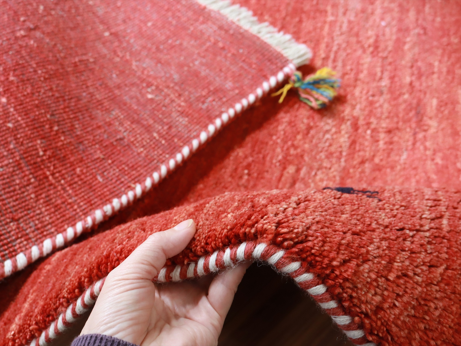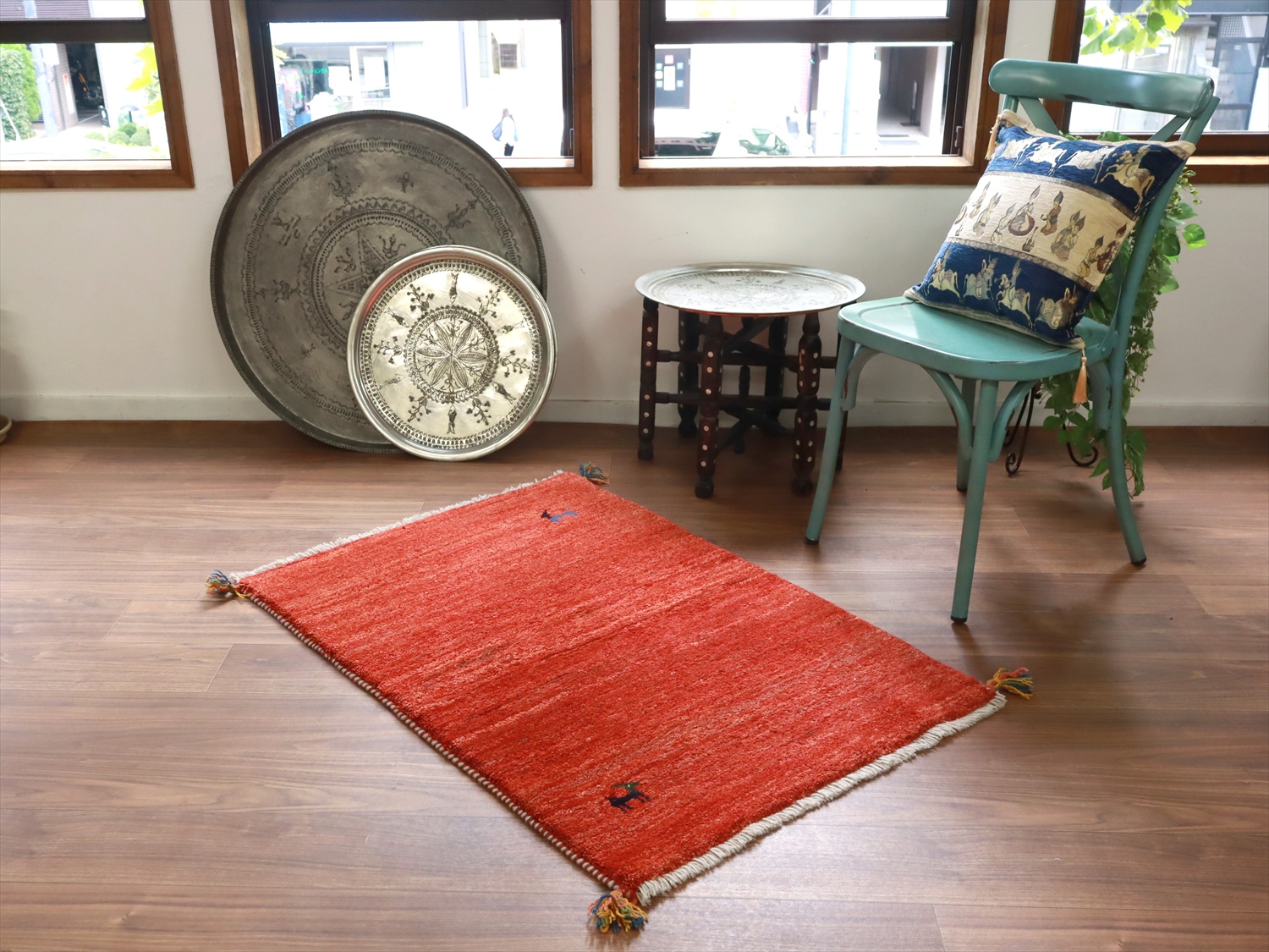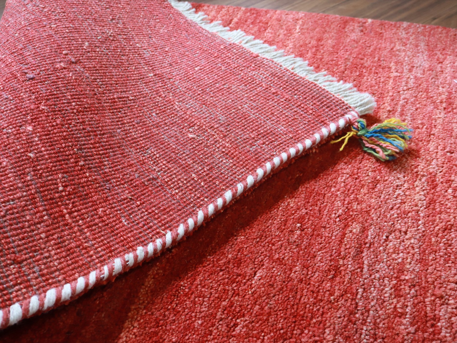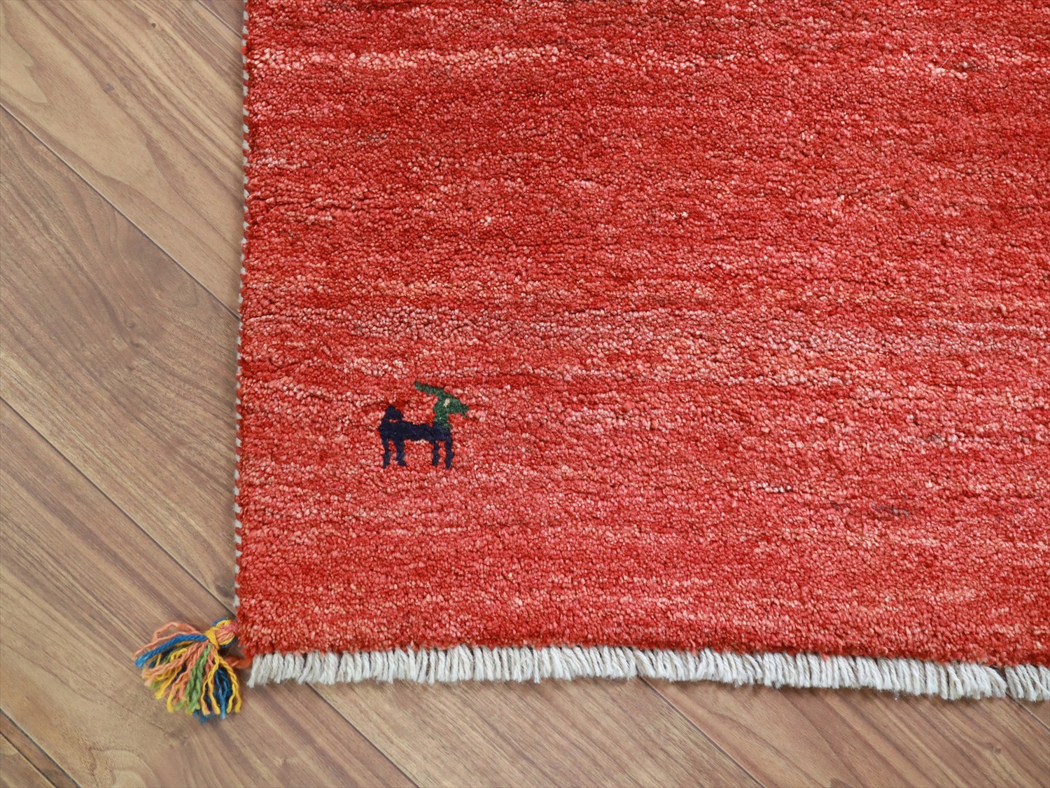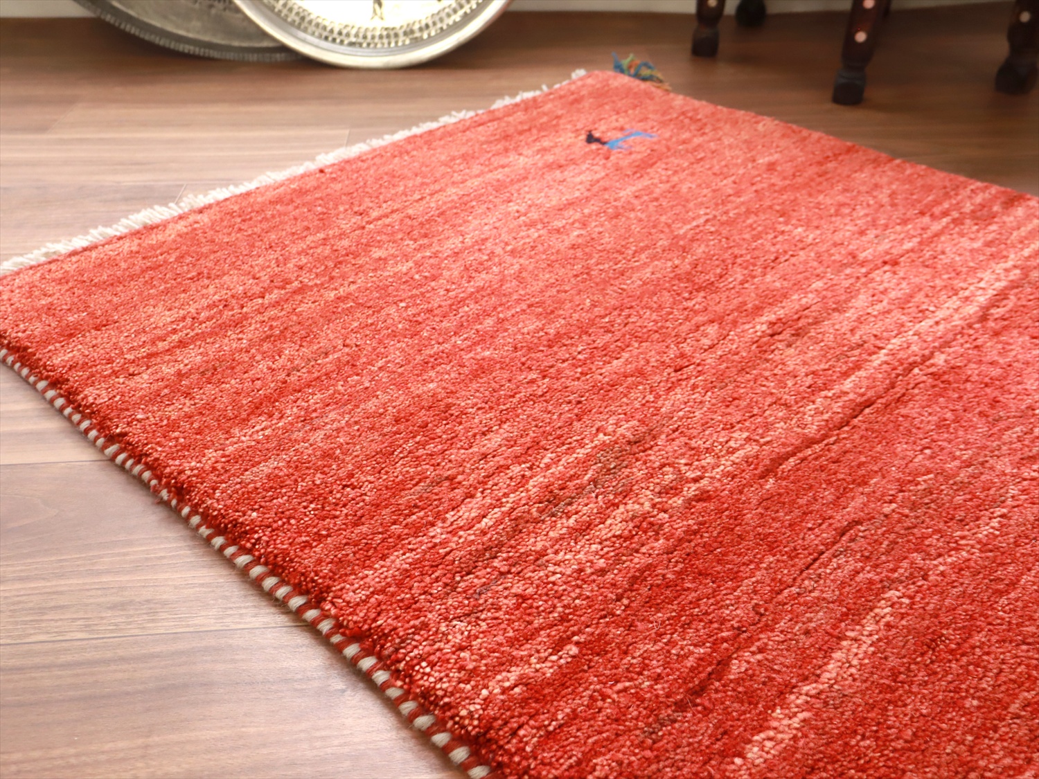 - ギャッベ 90's イラン 手織りラグ 113x82cm 素朴な織り 明るいレッド