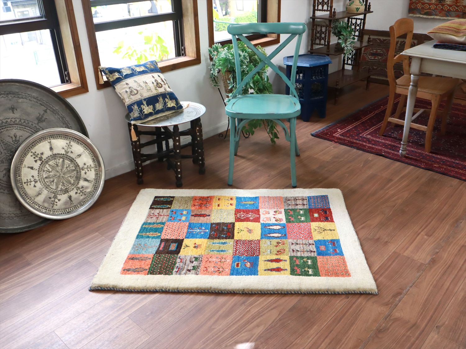 Key:ギャッベ,ギャベ,手織り,hand knotted, イラン直輸入, カシュカイ族, 遊牧民, ファルス地方, シラーズ, ウール100%, Shiraz, Area Rug, Handmade,玄関マット, 一点もの, 現品販売,東京、中野区,ガラタバザール